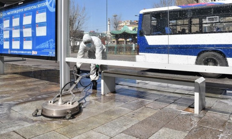 Автобусны буудлыг шүршигч төхөөрөмжөөр цэвэрлэлээ