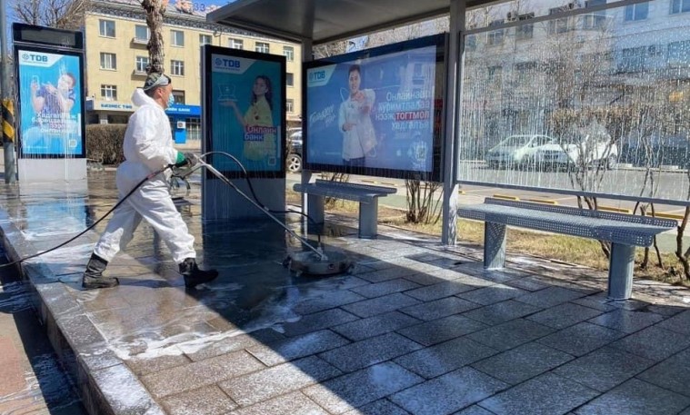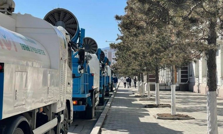Нийслэлийн авто замын хажуугийн моддыг шүршин угааж, өнгийг нь сэргээж байна