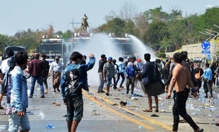 Мьянмарын тэмцэгчид цагдаа нартай тулж, даралттай усаар буудуулжээ