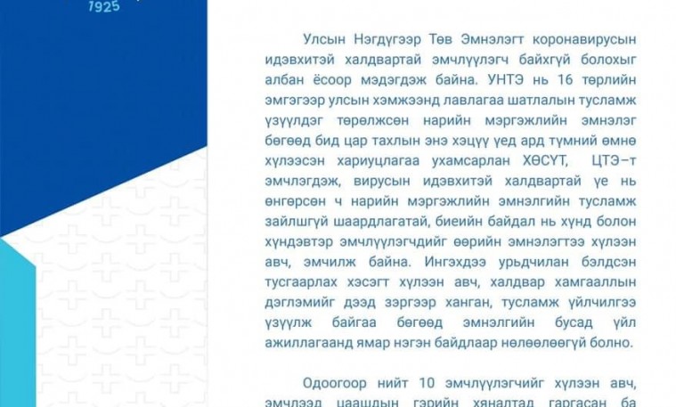 Улсын Нэгдүгээр Төв Эмнэлэгт идвэхтэй халдвар байхгүй