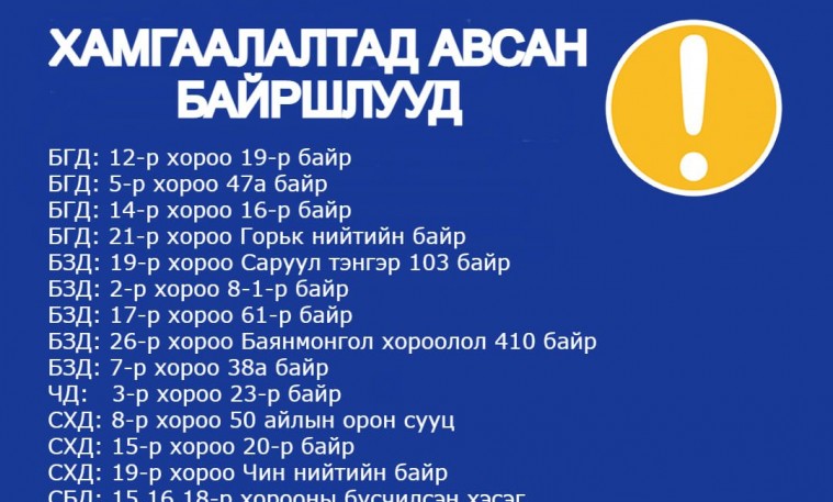 Өнөөдрийн байдлаар нийслэлд хөл хорио тогтоосон 15 байршил