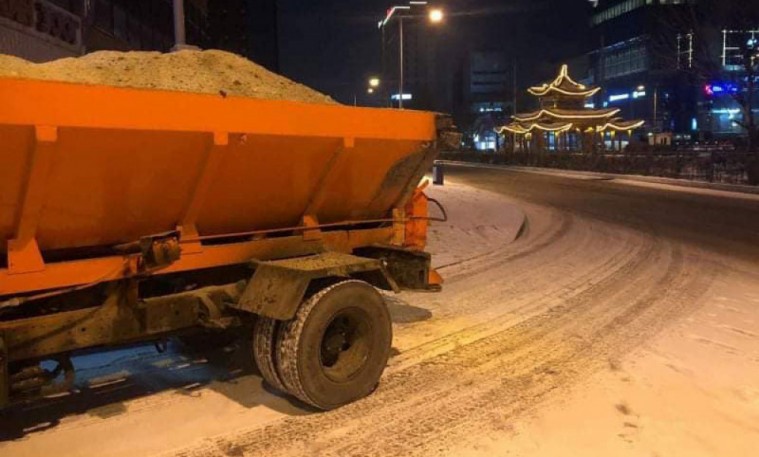 Урд шөнө орсон цасыг арилгахаар 200 тонн давс бодис цацлаа