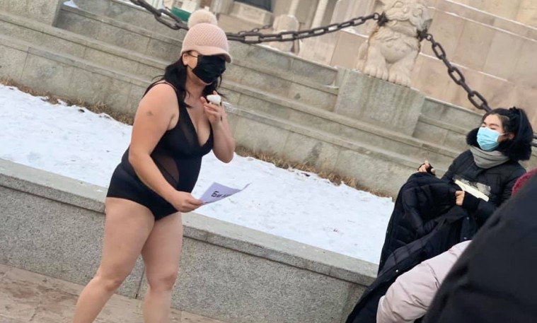 Жирэмсэн эмэгтэй хувцасаа тайлж эсэргүүцлээ илэрхийллээ