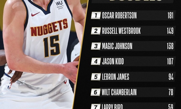 Өнөөдөр Denver Nuggets багийн төвийн тоглогч Nicola Jokic бүх цаг үеийн нэг улиралд Triple Double хийсэн буюу 10+10+10+ үзүүлэлттэй тамирчдын жагсаалтын 9-р байранд орж ирлээ.