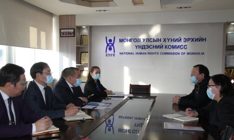 Монгол Улсын Хүний эрхийн Үндэсний Комиссын даргын үүргийг түр орлон гүйцэтгэгч бөгөөд ХЭҮК-ын гишүүн Ж.Хунан, Хүний эрхийн Үндэсний Комиссын гишүүн Х.Мөнхзул, Г.Нарантуяа, Д.Сүнжид, Б.Энхболд нартай МҮЭ-ийн холбооны ЕНБД Г.Адъяа, ХХХБГ-ын дарга Ц.Отгонтунгалаг нар өнөөдөр /2020.12.14/ уулзаж, цаг ү