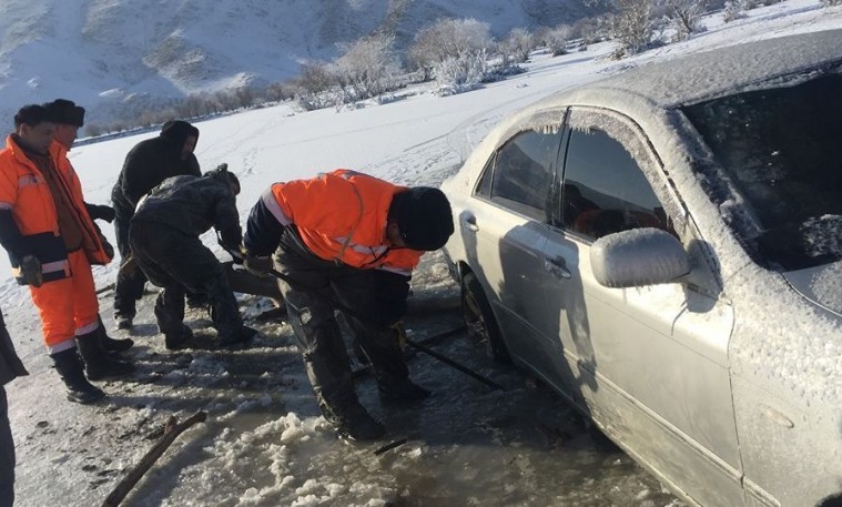Ховд голын мөсөнд цөмөрч, суусан автомашиныг татан гаргажээ