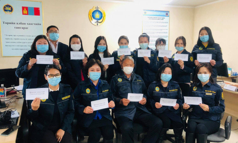 “Маскаа зүүцгээе, гараа угаая” аяны хүрээнд Баянгол дүүрэг дэх Мэргэжлийн хяналтын хэлтсийн улсын ахлах байцаагчид дүүргийн Тамгын газрын албан хаагчид, үйлчлүүлэгчдэд Ковид-19 халдварт өвчнөөс урьдчилан сэргийлж иргэн бүр маск зүүх, гараа угаах ач холбогдлын талаар сэрэмжлүүлэг тарааж,