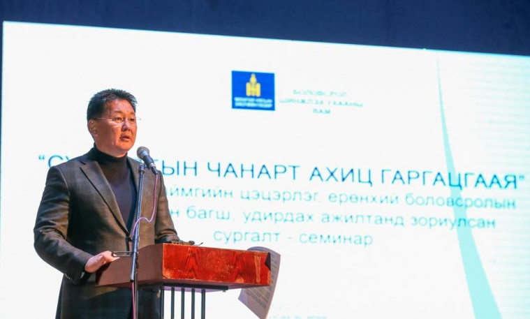 Монгол Улсын Ерөнхий сайд У.Хүрэлсүх Сүхбаатар аймагт ажиллах үеэрээ Боловсрол, шинжлэх ухааны яамнаас зохион байгуулж байгаа боловсролын салбарынхны сургалт-семинарт оролцлоо. Тэрээр энэ үеэр “монгол хүний зан чанар, хүмүүжил, үндэсний түүх, хэл, соёл, зан заншил, эх оронч сэтгэлгээ, өв уламж