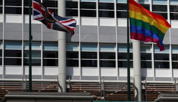 АНУ, Их Британи улсууд бэлгийн цөөнхүүдийг дэмжиж буйгаа илэрхийлж ЛГБТ хүмүүсийн бэлгэ тэмдэг болсон солонгын тугийг Москва хот дахь элчин сайдын яамдынхаа гадна төрийн далбааныхаа дэргэд зэрэгцүүлэн мандуулсан байна. ЛГБТ гэдэг нь лесбиян, гей, бисексуал, трансжендер гэсэн үгнүүдийн товчлол бөгө