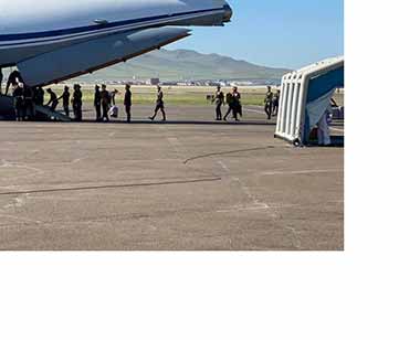 Аугаа их Эх орны дайны ялалтын 75 жилийн ойн цэргийн парадын ёслолд оролцсон Зэвсэгт хүчний бие бүрэлдэхүүн өнөөдөр 08:33 цагт “Чингис” хаан олон улсын нисэх буудалд газардлаа. ОХУ-ын Батлан хамгаалах яамны ИЛ-76 цэргийн онгоцоор Монгол Улсын Ерөнхийлөгчийн бие төлөөлөгчийн хуви