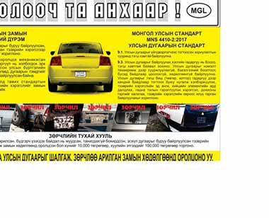 Тээврийн цагдаагийн албанаас тээврийн хэрэгслийн улсын дугаартай холбоотой нийтлэг илэрч байгаа зөрчлүүдийг арилгуулах зорилгоор "Улсын дугаар 2020" хэсэгчилсэн арга хэмжээг зургадугаар сарын 1-ний өдрөөс зургадугаар сарын 30-ны өдрийг дуустал улсын хэмжээнд зохион байгуулан ажиллаж байна. Иймд ж