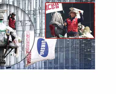 Өмнөд Солонгосын хамгийн том компани болох “Samsung”-аас олон жилийн өмнө шударга бусаар халагдсан 61 настай Ким Ён Хи нэг жил орчмын дараа эсэргүүцлээ зогсоож, 25 метрийн шон дээрээсээ буужээ. Тэрбээр 30-аад жилийн өмнө тус компанид ажиллаж байхдаа үйлдвэрчний эвлэл