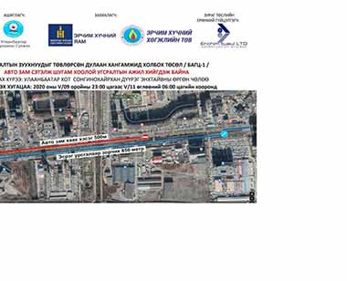 Сонгинохайрхан дүүргийн 29 дүгээр хороо, Энхтайваны өргөн чөлөө, Москва хорооллын хойд хэсгийн авто замыг маргааш буюу тавдугаар сарын 9-ний 23:00 цагаас тавдугаар сарын 11-ны 06:00 цагийн хооронд хааж, дулааны шугам угсралтын ажил хийж гүйцэтгэх тул жолооч та бүхэн замын ачааллыг тооцон хөдөл