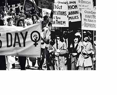 1857 онд Нью-Йорк хотын оёдлын болон гутлын үйлдвэрийн ажилчин эмэгтэйчүүд ажлын цагийг багасгах, гэрэл гэгээтэй, цэмцгэр тохилог ажлын байр бүрдүүлэх, эрчүүдтэй эн тэнцүү хөдөлмөрийн хөлс авч байх шаардлага тавин жагсчээ. Учир нь тэр үед эмэгтэйчүүд өдөрт 16 цаг цалингүй шахам ажиллаж байхад, эрчүү