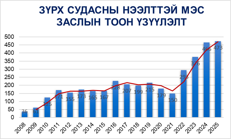 Сүүлийн гурван жилийн мэс заслын дараах нас баралтын дундаж 2.5 хувь байгаа нь олон улсын дундаж үзүүлэлт (2.2–3.1%)-тэй дүйцэж, тусламж үйлчилгээний чанар, аюулгүй байдлыг хангаж буйг илтгэж байна.