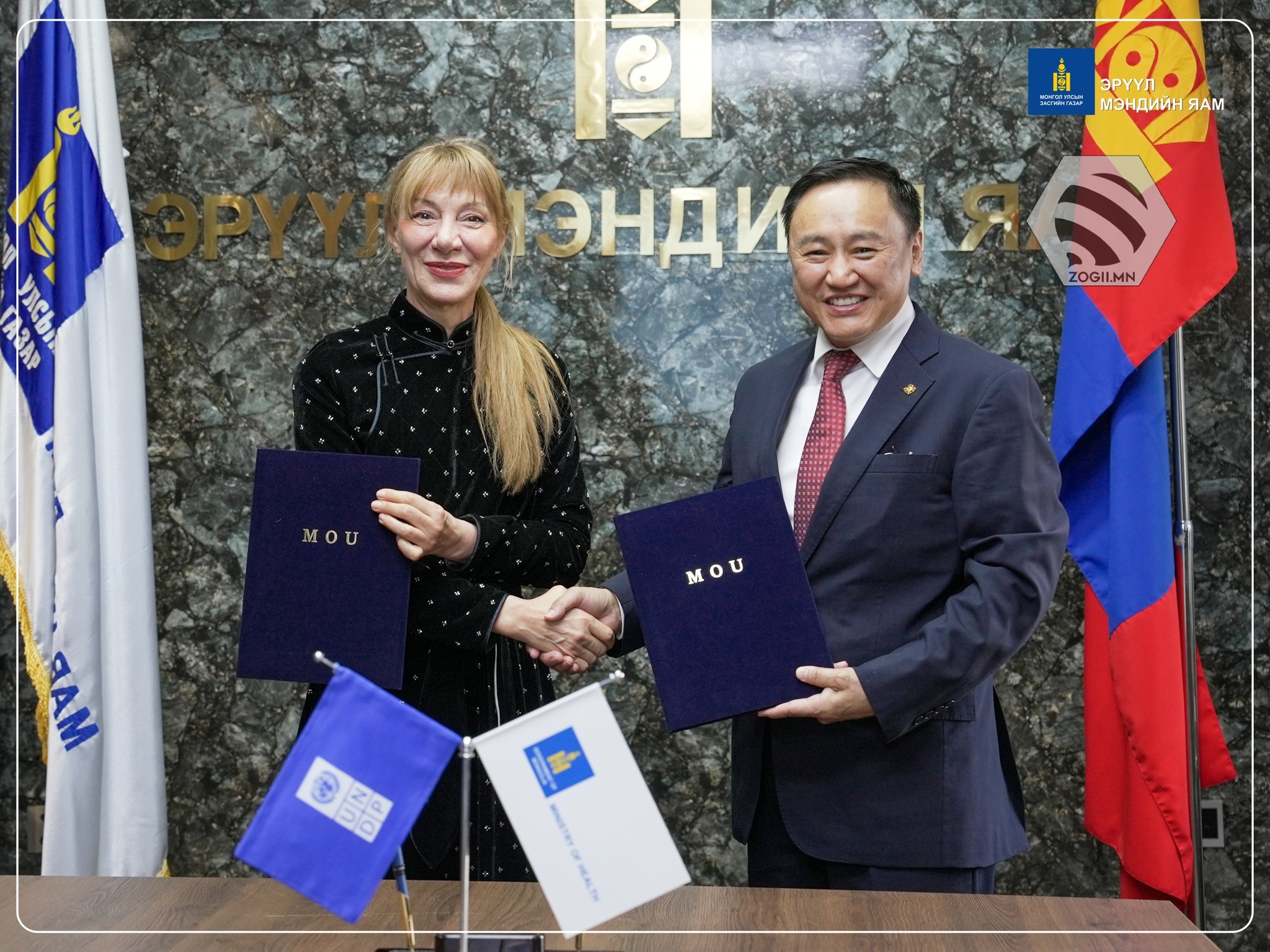 Өнөөдөр Эрүүл мэндийн сайд Ж.Чинбүрэн болон Нэгдсэн Үндэстний байгууллагын Хөгжлийн хөтөлбөрийн Суурин төлөөлөгч Матилда Димовска нар харилцан ойлголцлын санамж бичигт гарыг үсэг зурлаа.