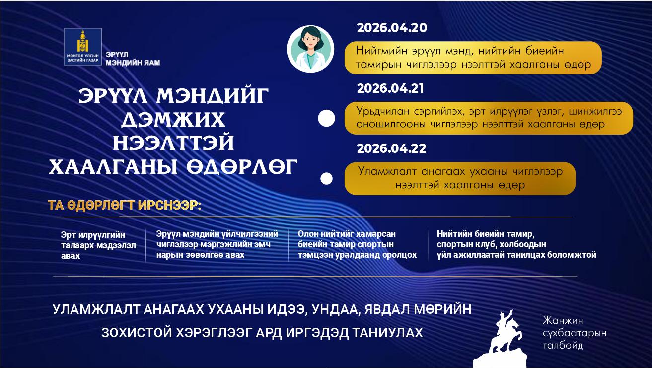 - 2026.04.20 – Нийгмийн эрүүл мэнд, нийтийн биеийн тамир