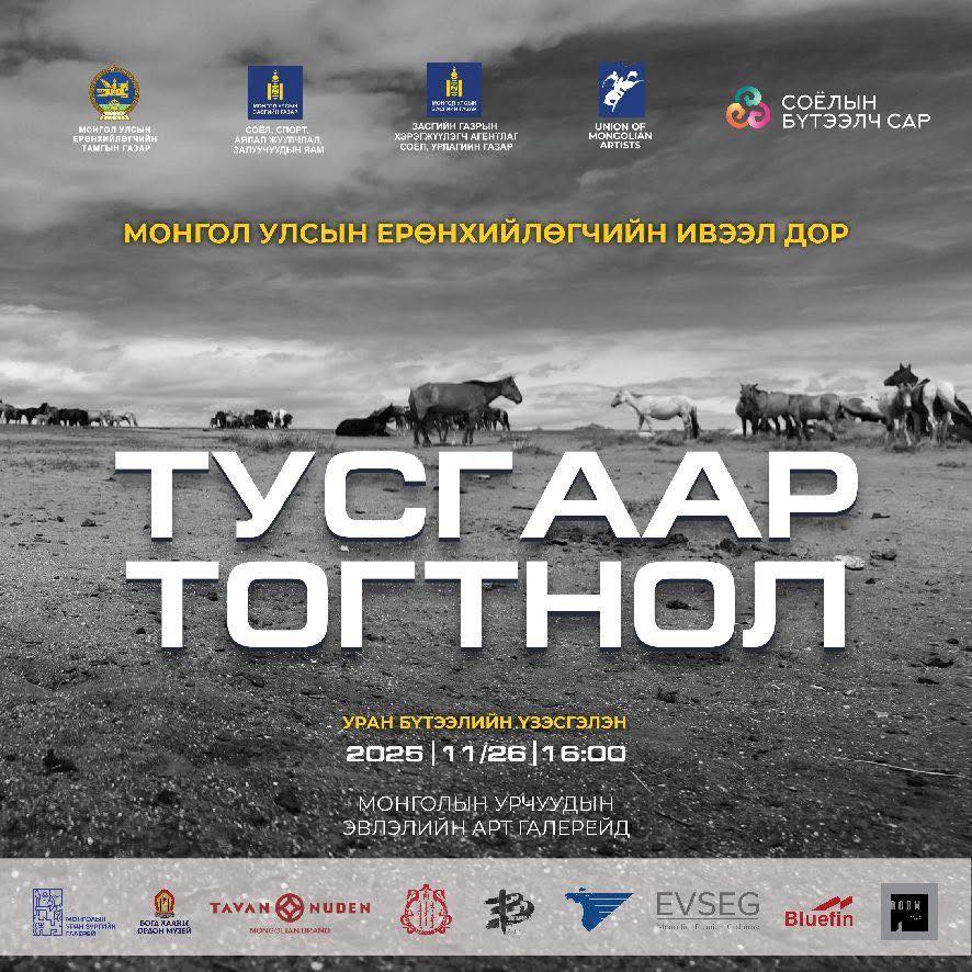 Монгол Улсын Ерөнхийлөгчийн ивээл дор зохион байгуулагдаж буй “Тусгаар тогтнол” уран бүтээлийн үзэсгэлэнгийн нээлт 2025 оны 11 дүгээр сарын 26-ны өдөр 16:00 цагт Монголын Урчуудын Эвлэлийн Арт галерейд болно.