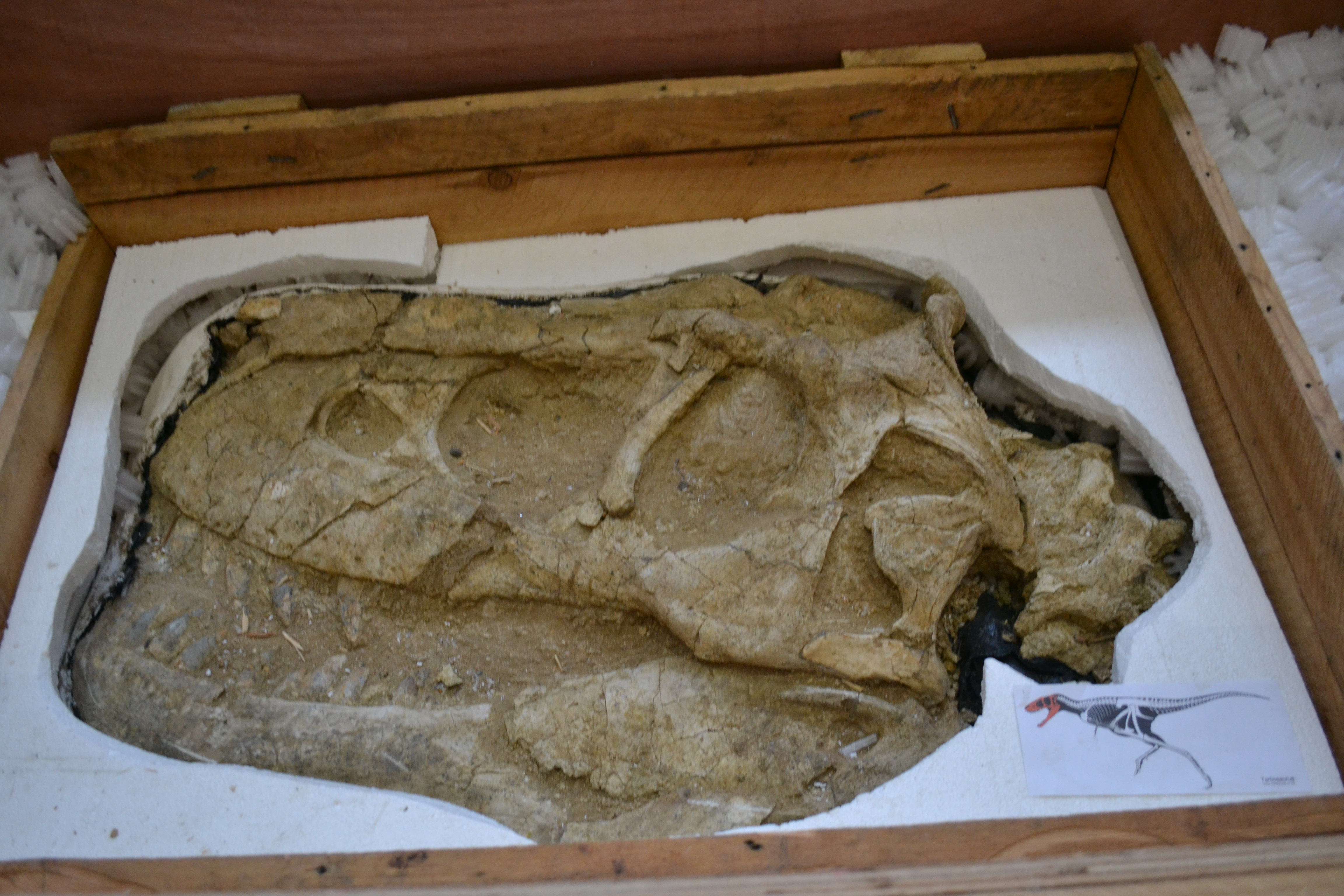 Тус олдворыг Бразил Улсаас тус хүрэлцэн ирсэн усан онгоц болон “Крэйзаурус” /Creazaurus/ компанийн байранд шалгалт хийх явцад илрүүлж, 2015 оноос мөрдөн шалгах ажиллагааг эхлүүлсэн байна. Францын талаас 2016 онд эрх зүйн харилцан туслалцаа үзүүлэх хүсэлтийг Монгол Улсын Ерөнхий прокурорын газарт ирүүлсэнтэй холбогдуулан, манай улсад зохих мөрдөн шалгах ажиллагааг зохион байгуулж, Лион хотод хураагдсан Тарбозавр батаарын чулуужсан олдворыг Монгол Улсаас гаралтай болохыг Францын талд мэдэгджээ.