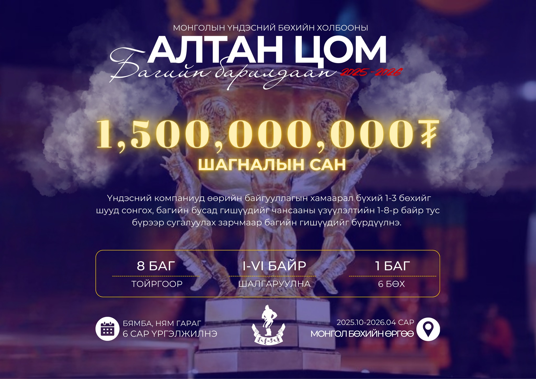 “Алтан Цом”-ын 2022, 2023 оны барилдааны шагналын сан 650,000,000 төгрөг байсан бол энэ жилийн барилдааны ШАГНАЛЫН САН 1,500,000,000 ТӨГРӨГ байхаар шийдвэрлэсэн болно.