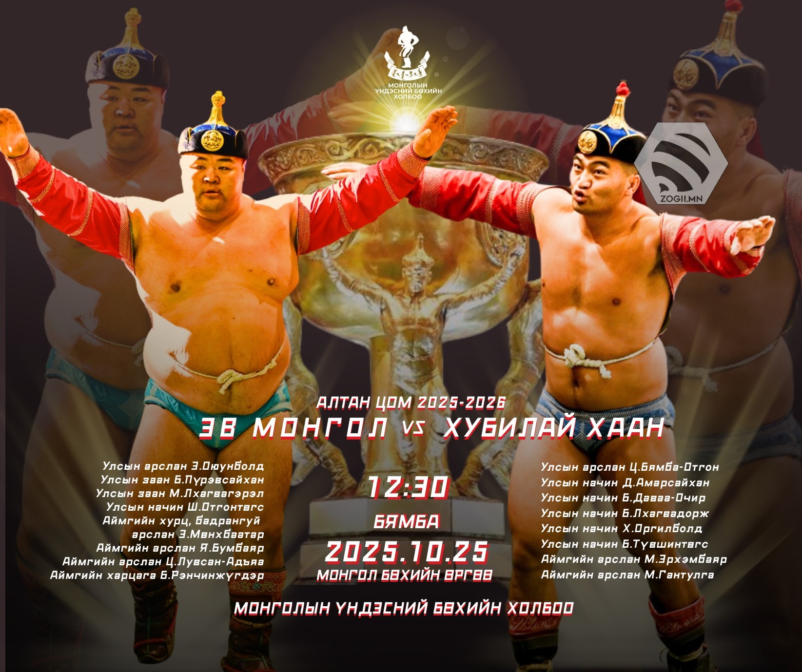 Монголын үндэсний бөхийн холбооны 2025–2026 оны “Алтан цом”-ын барилдаан энэ сарын 25-ны өдөр 12:30 цагт Монгол бөхийн өргөөнд нээлтээ хийнэ.