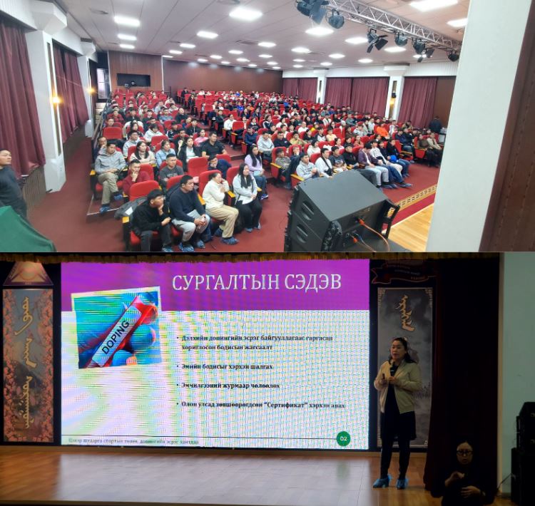 Үндэсний шигшээ багийн тамирчин, дасгалжуулагчдад “Допингийн эсрэг” сургалтыг зохион байгууллаа. Сургалтыг Монголын үндэсний допингийн эсрэг үндэсний төвийн ахлах мэргэжилтэн Д.Энхсанаа зохион байгуулсан бөгөөд Үндэсний шигшээ багийн 200 гаруй тамирчин, дасгалжуулагч хамрагдав. Сургалтаар Дэлхийн допингийн эсрэг байгууллагаас гаргасан хориотой эмийн бодисын жагсаалт, Эмийн бодисыг хэрхэн шалгах, Эмчилгээний журмаар чөлөөлөх, Олон улсад зөвшөөрөгдсөн “Сертификат” хэрхэн авах талаар мэдээ мэдээлэл өгсөн юм.