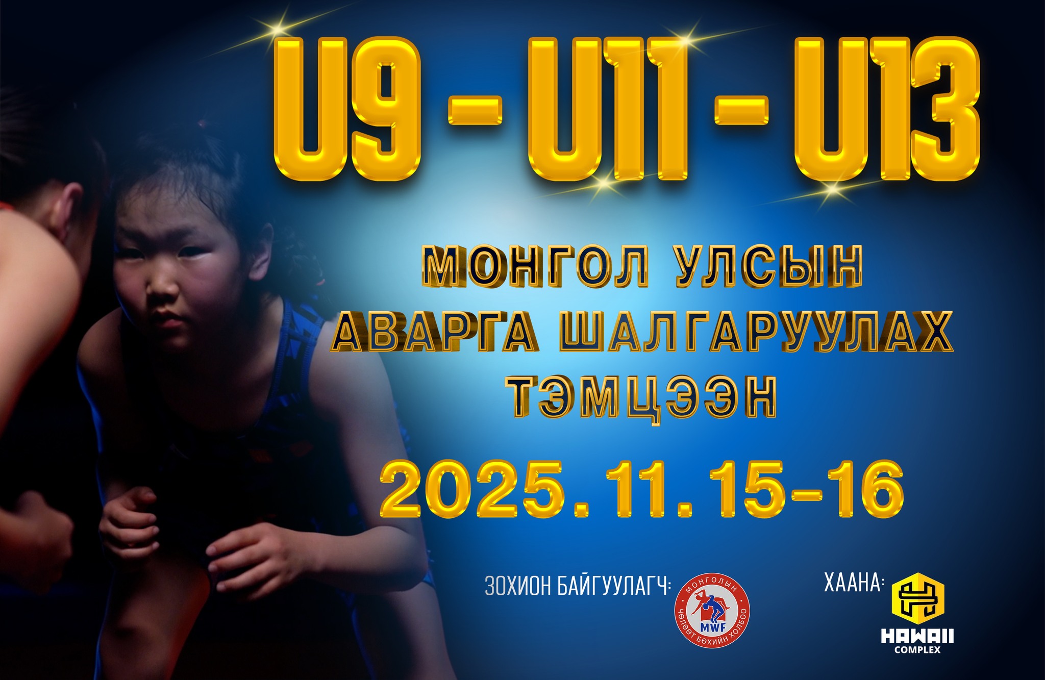 Монголын чөлөөт бөхийн холбоо бага насны улсын аварга шалгаруулах тэмцээн буюу U9, U11, U13 насны өсвөрийн тамирчдын тэмцээнийг 2024 оноос эхлэн зохион байгуулж эхэлсэн билээ. Энэ удаагийн тэмцээн 2025 оны 11-р сарын 15, 16-ны өдрүүдэд Баянгол дүүргийн 6-р хороонд байрлах "HAWAII SPORT COMPLEX"-д зохион байгуулагдах тул та бүхнийг өргөнөөр оролцож ирээдүйн олимп, тив дэлхийн аваргуудаа бэлтгэн гаргах үйлсэд идэвхтэй оролцохыг уриалж байна.