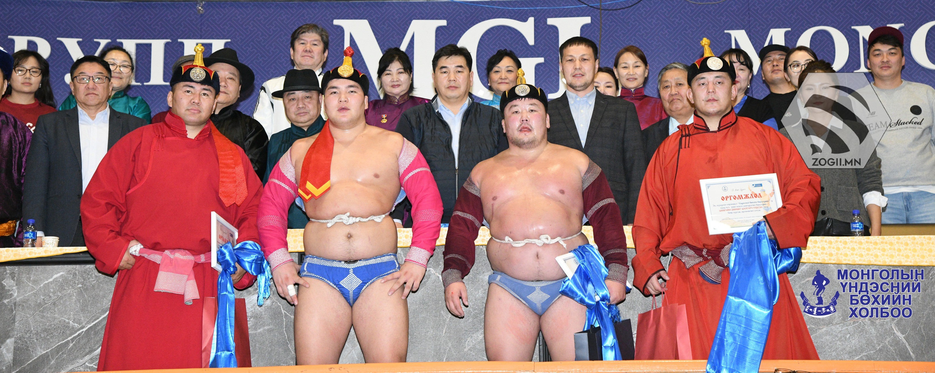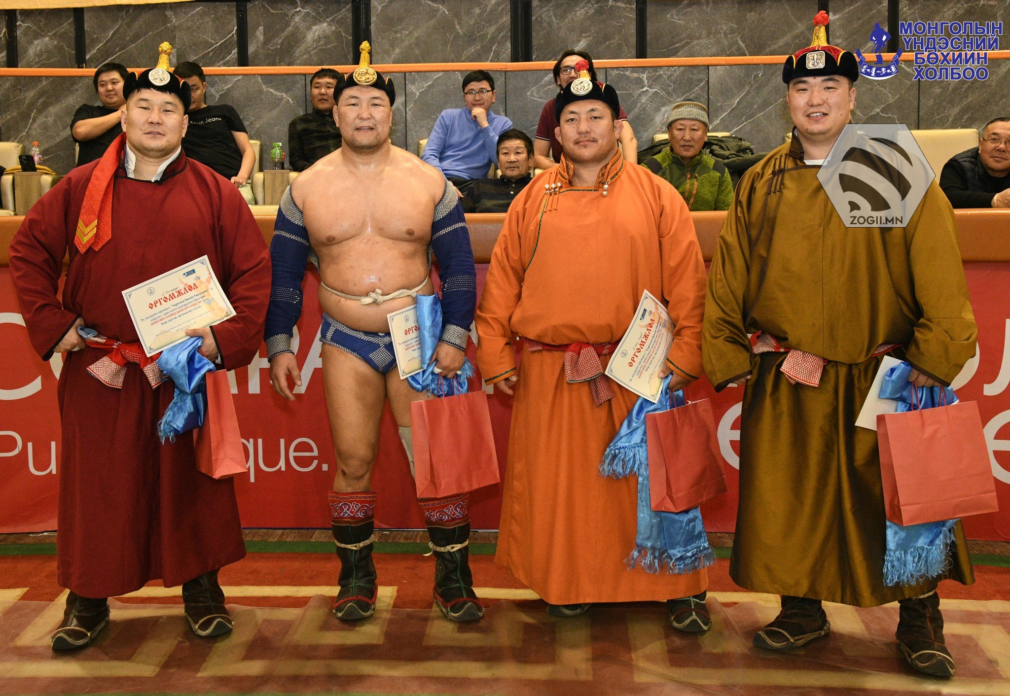 Тус барилдаанд Баянхонгор аймгийн Жинст сумын харьяат, "Алдар" спорт хороо, Эм Си Эс групп, Богд банк, Хос Хаш Оюу ХХК, Гал Хонгор ХХК, Тэргүүн Богд дэвжээний бөх, улсын арслан Энхтүвшиний Батмагнай түрүүлж, Хөвсгөл аймгийн Их-Уул сумын харьяат, "Сүлд" спорт хороо, ШШГЕГ 461-р анги, Импро групп, Зорчигч Тээвэр 1 ОНӨААТҮГ, "Хөвсгөлийн Хүчтэн" дэвжээний бөх, улсын начин Батбаярын Даваа-Очир үзүүрлэв.