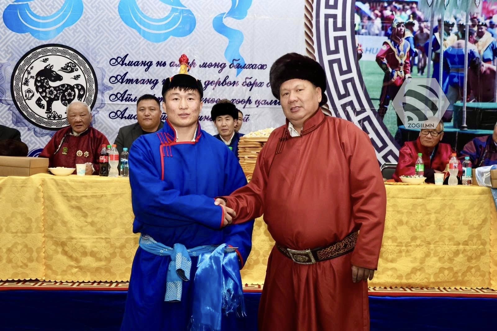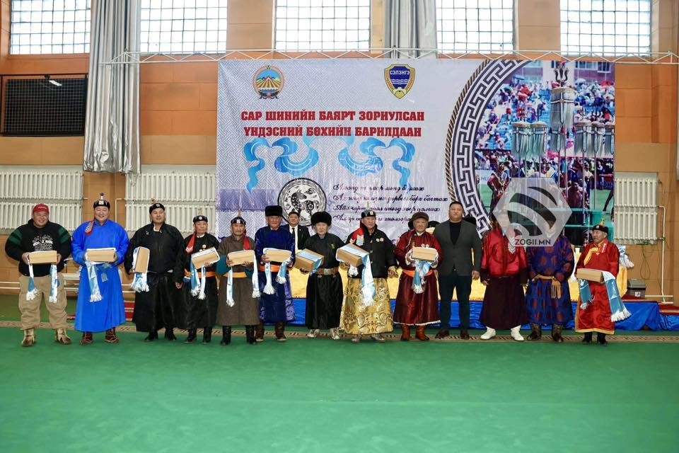 Сар шинийн баярт зориулсан хүчит бөхийн барилдааны "Уран барилдаант бөх"-өөр Баянхонгор аймгийн Эрдэнэцогт сумын харьяат, сумын заан Д. Банзрагч шалгарч, шагналыг аймгийн Засаг дарга Н.Лхагвадорж гардуулан өгч амжилт хүслээ.