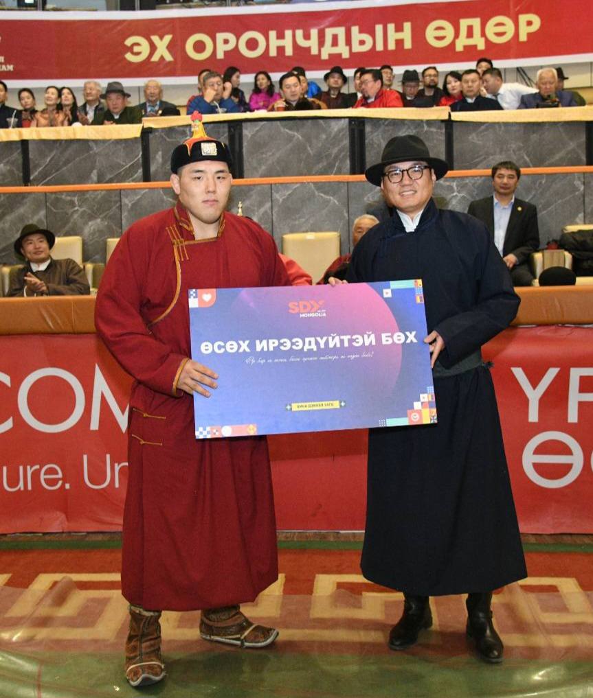 Зохион байгуулагчдын зүгээс "Өсөх ирээдүйтэй бөх"-ийн шагналыг аймгийн арслан М.Баяржавхланд гардуулсан юм.