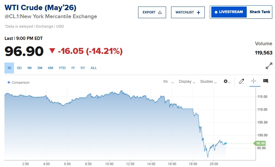 Америк, Ираны талууд 14 хоногийн хугацаатай гал зогсоохоор тохирч, Ормузын хоолойг хяналтын дор нээж, далайн тээврийн хөлөг онгоцуудыг нэвтрүүлэхээ мэдэгдсэнтэй зэрэгцэн дэлхийн түүхий эдийн зах зээлд газрын тосны үнэ огцом буурч эхэллээ.