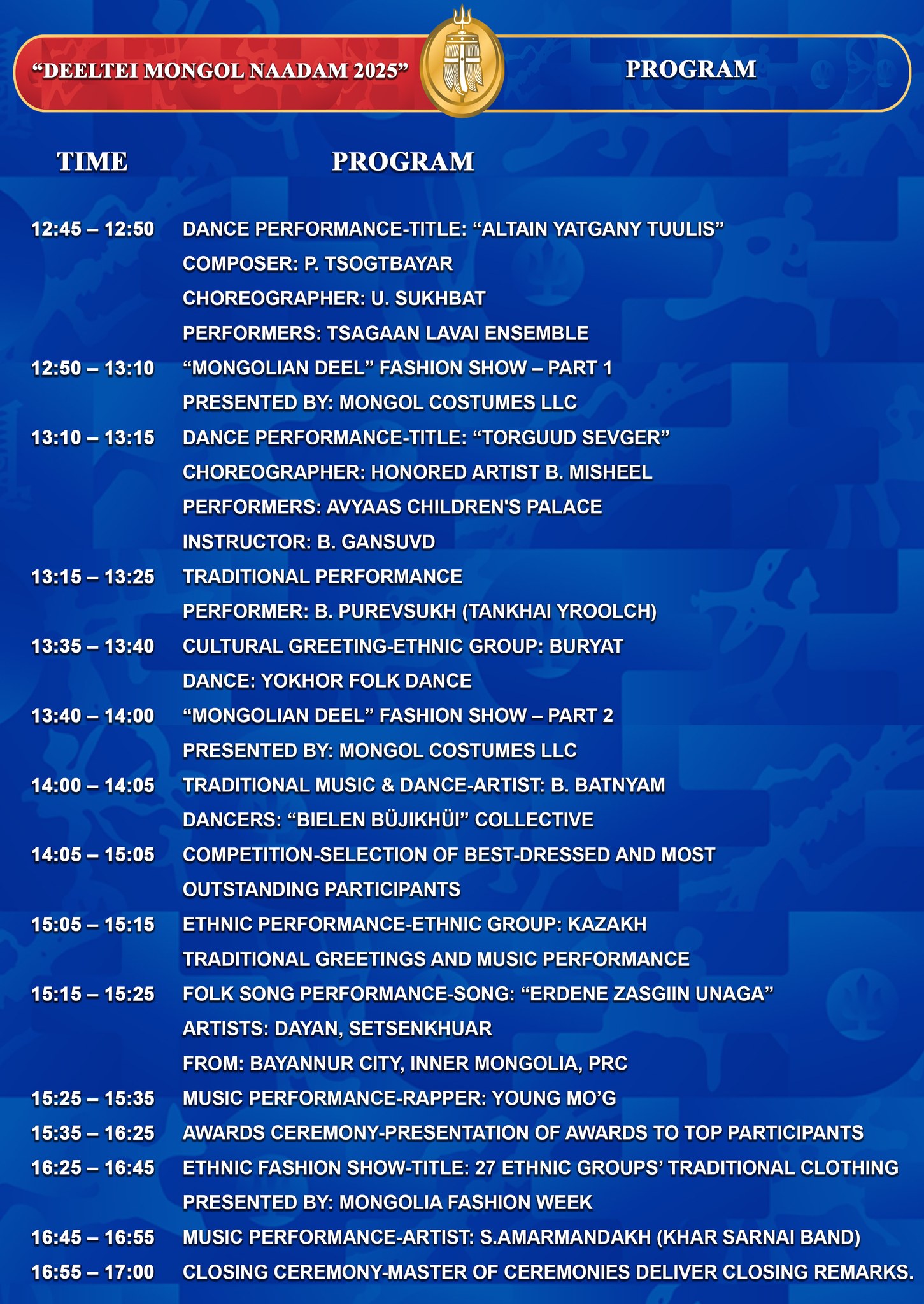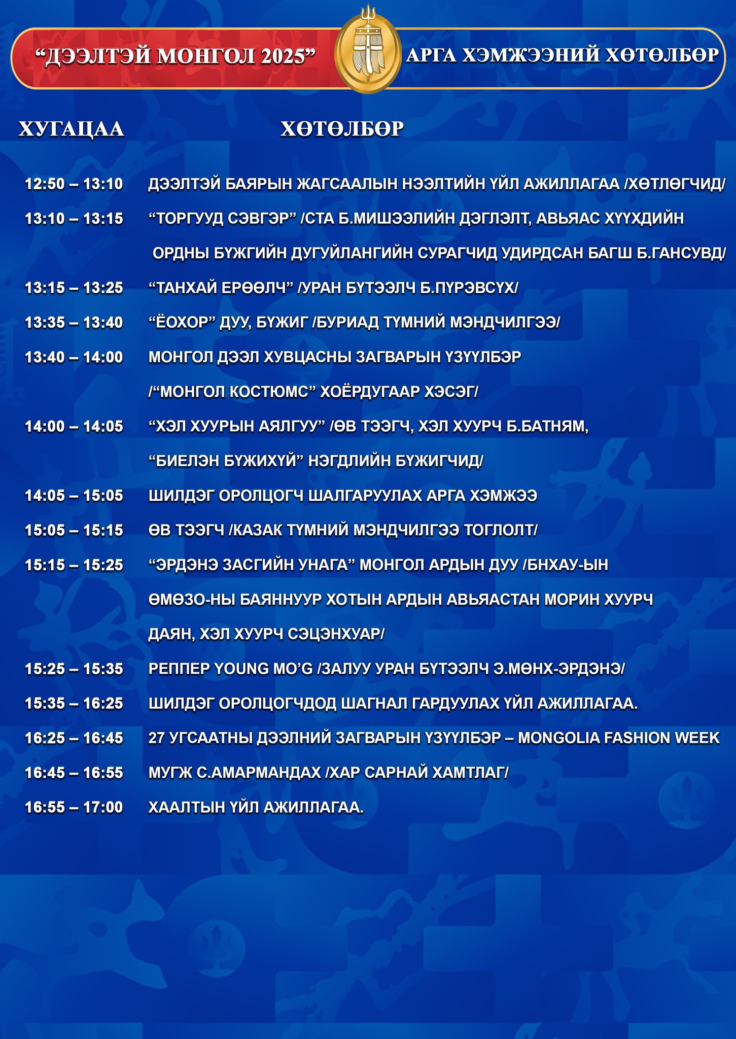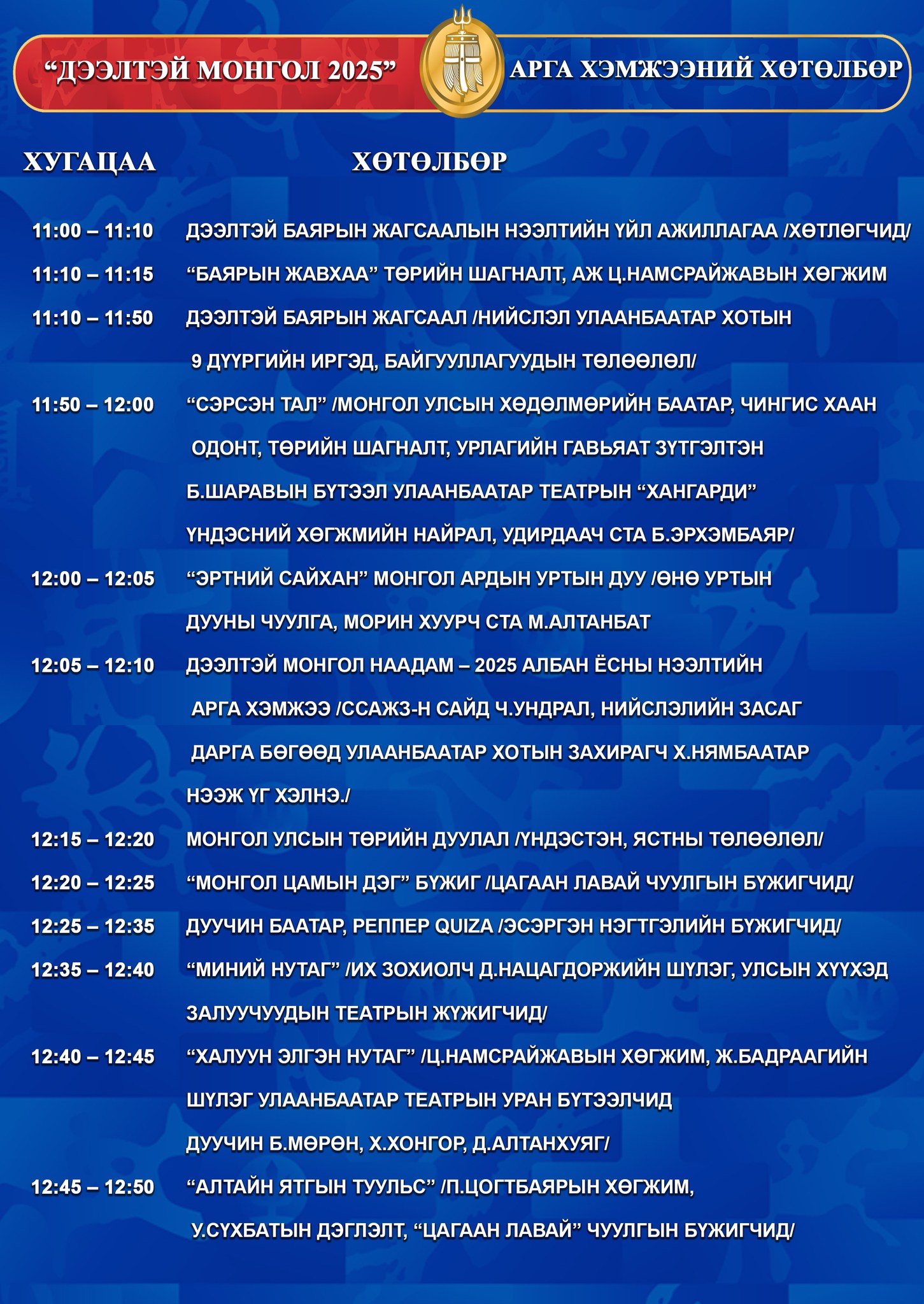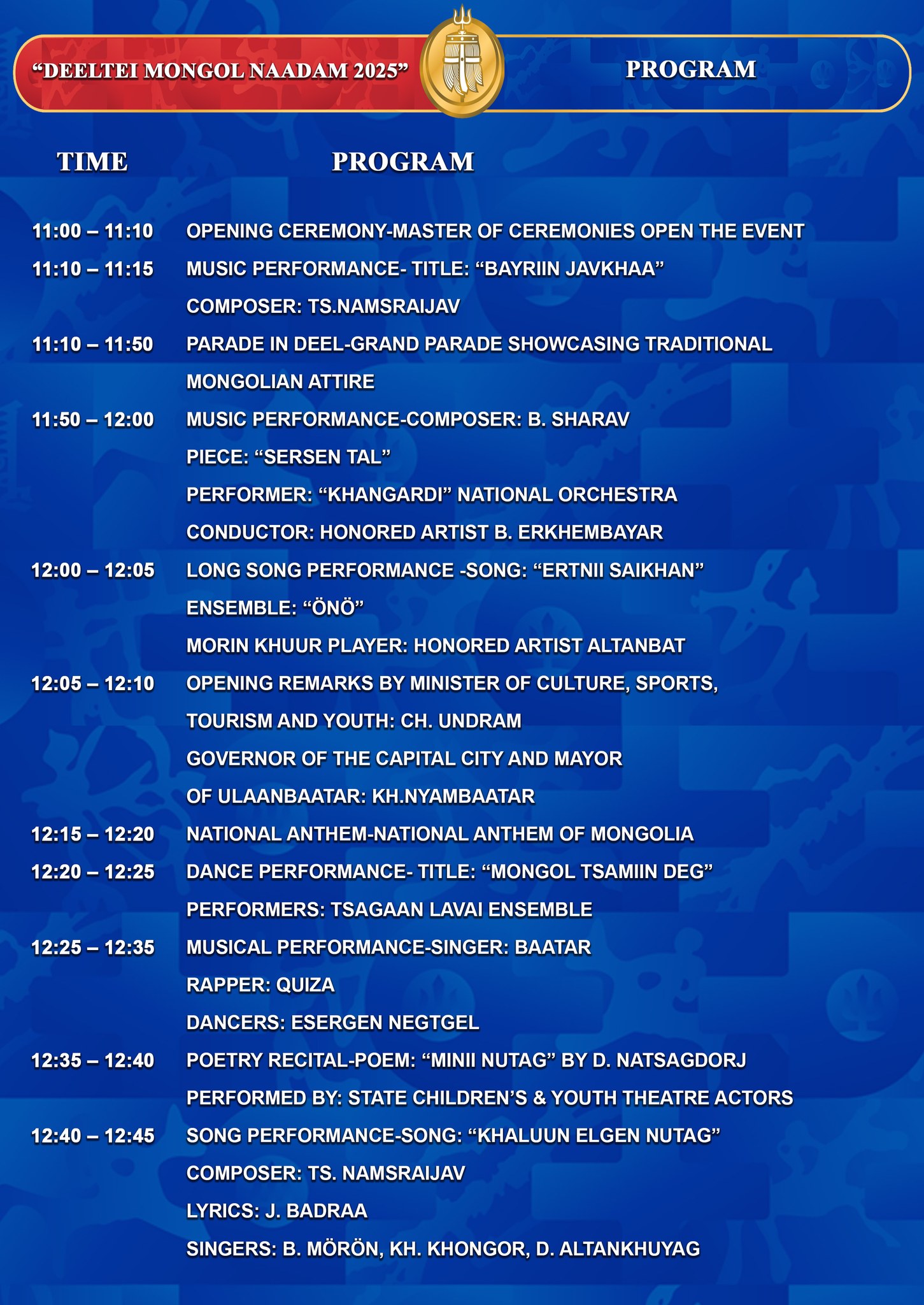 Наадмын хөтөлбөрийг танилцуулж байна.