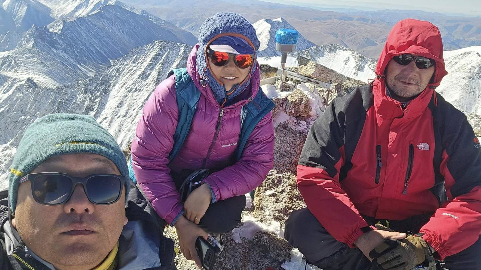 Монгол Улсын Зөвлөх инженер О.Хосбаяр /Геосурвей ХХК-ийн захирал/, инженер О.Пүрэвдорж /Этүгэн инженеринг ХХК-ийн захирал/, уулчин, хөтөч Э.Уранболор /Геосан ХХК-ийн инженер/ нар эдгээр мөс, цастай өндөр уулс дээр эр зориг гарган авирч, мэргэжлийн ур чадвараа ашиглан геодезийн хэмжилтийг амжилттай гүйцэтгэж байна.