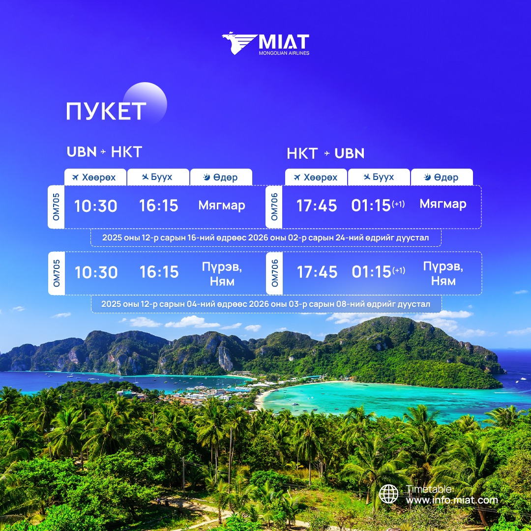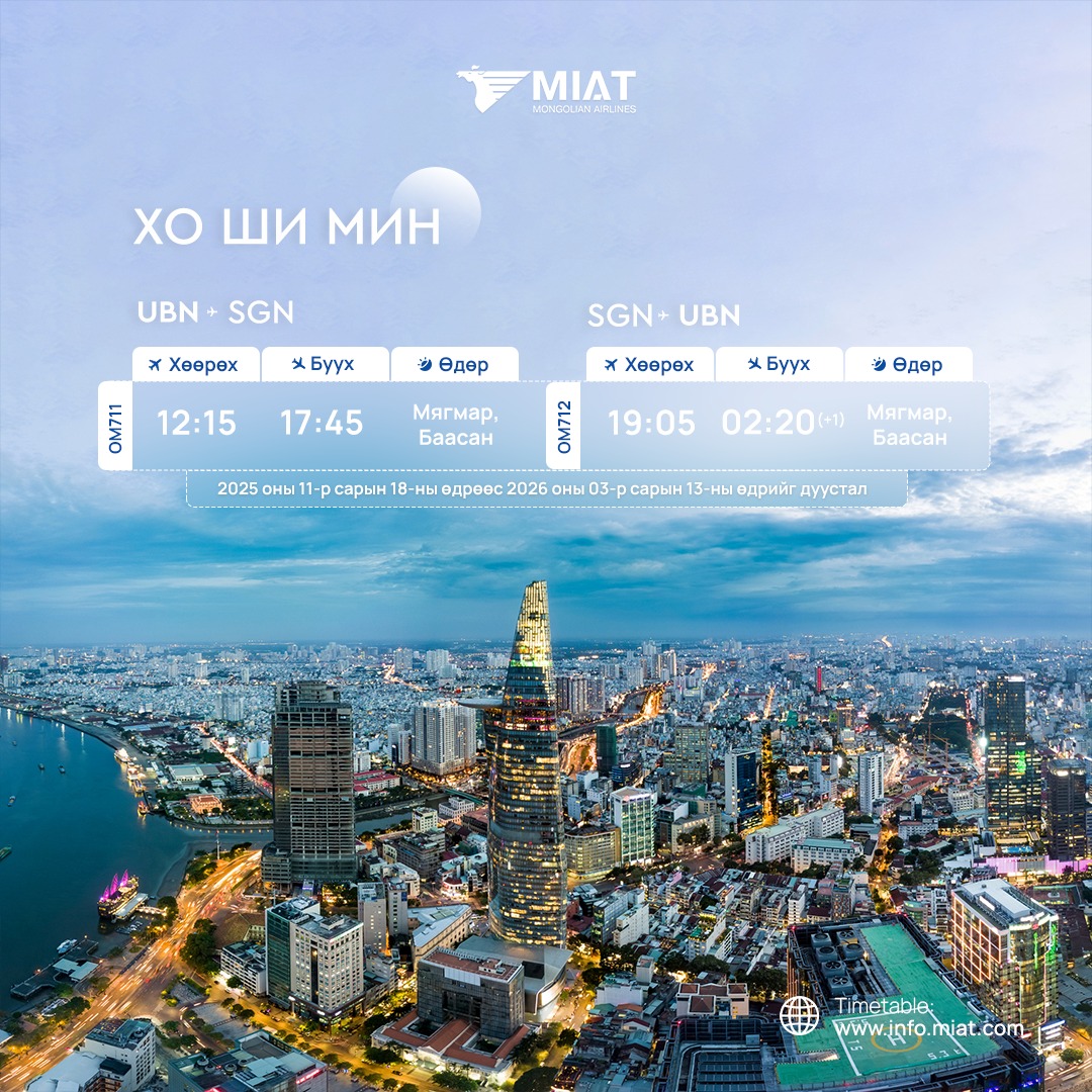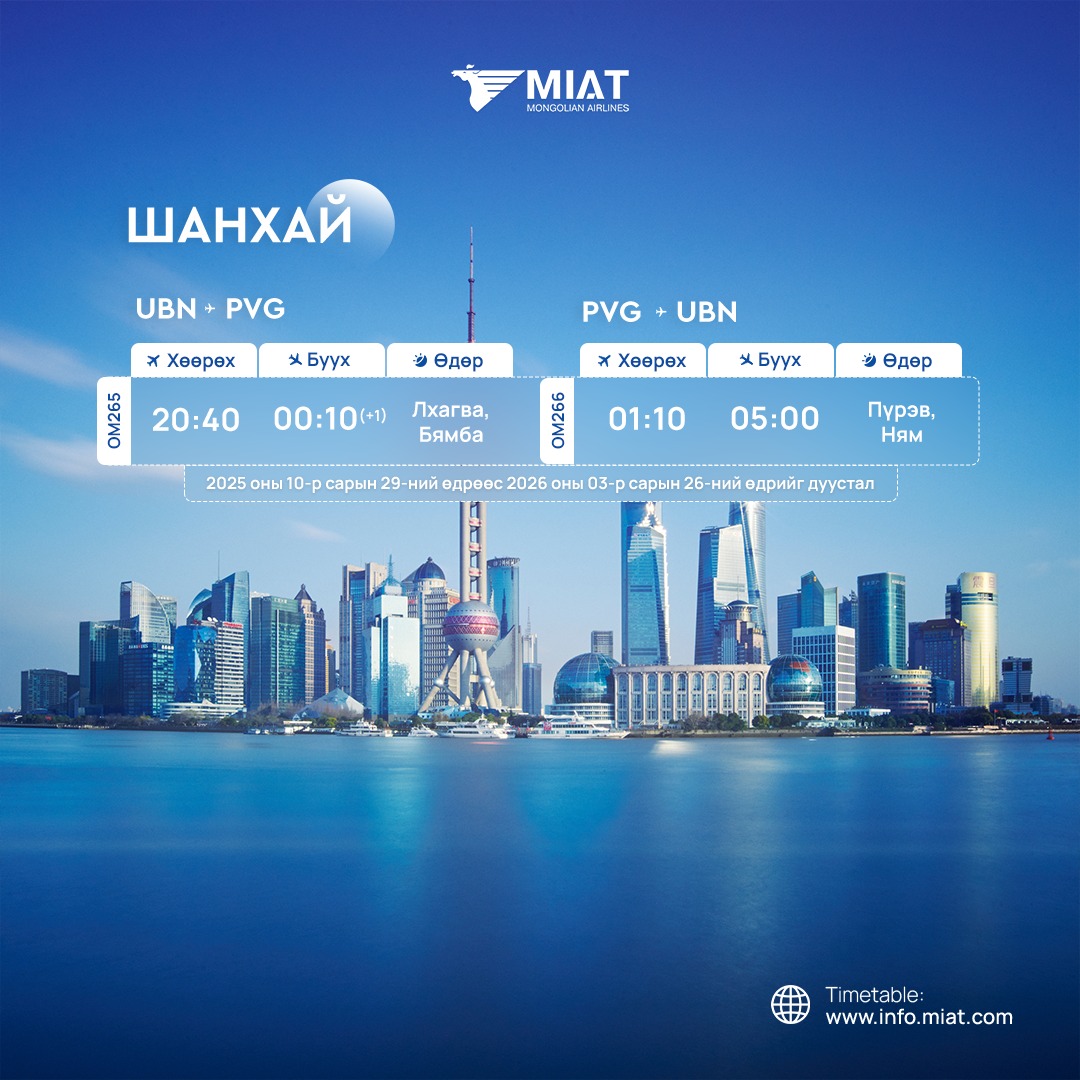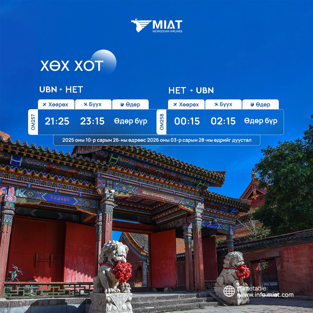2025 оны 10-р сарын 22-ны өдрөөс 2026 оны 03-р сарын 28-ны өдрийг дуустал хугацаанд мөрдөх олон улсын нислэгийн өвлийн цагийн хуваарийг танилцуулж байна.