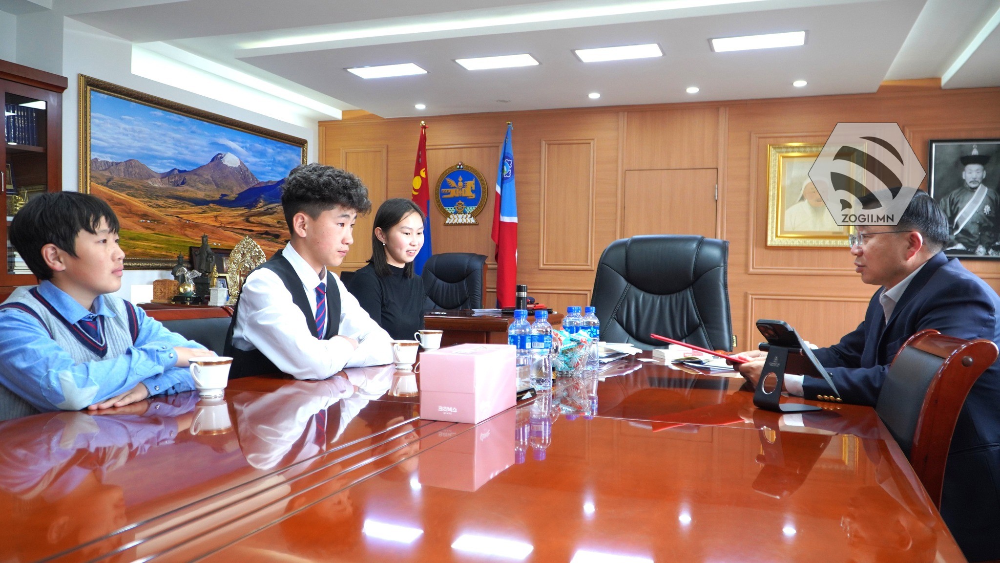 Тэмцээнд нэг баг болон оролцсон Улиастай сумын 3 дугаар сургуулийн 11б ангийн сурагч Н.Энхмэнд, Г.Алтанзул, 9б ангийн сурагч Б.Бат-Орших нартай аймгийн Засаг дарга Г.Өнөрбаяр уулзаж, баяр хүргэлээ.