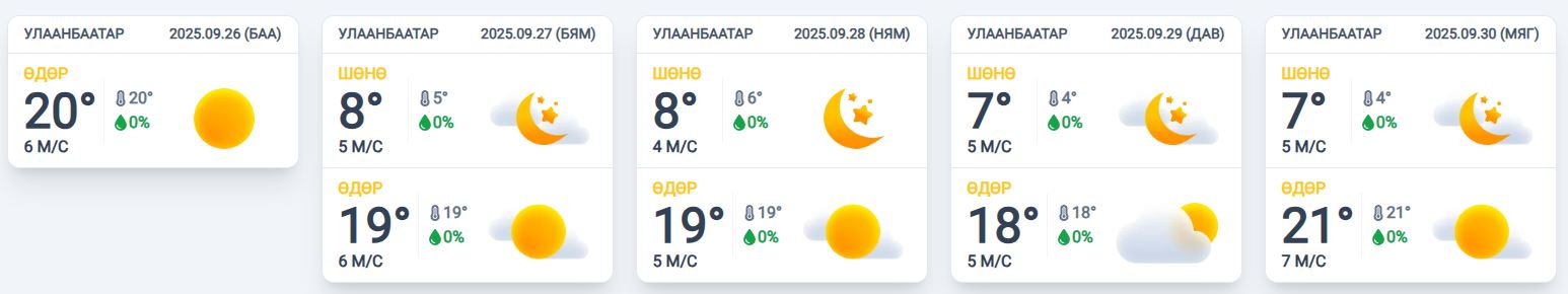 2025 оны 09 дүгээр сарын 26-наас 10 дугаар сарын 05-ныг хүртэлх 10 хоногийн цаг агаарын урьдчилсан төлөвийг танилцуулж байна.