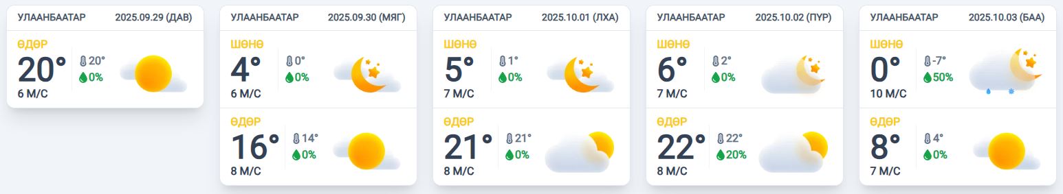 Улаанбаатар хот орчмын 10 хоногийн цаг агаарын урьдчилсан төлөв