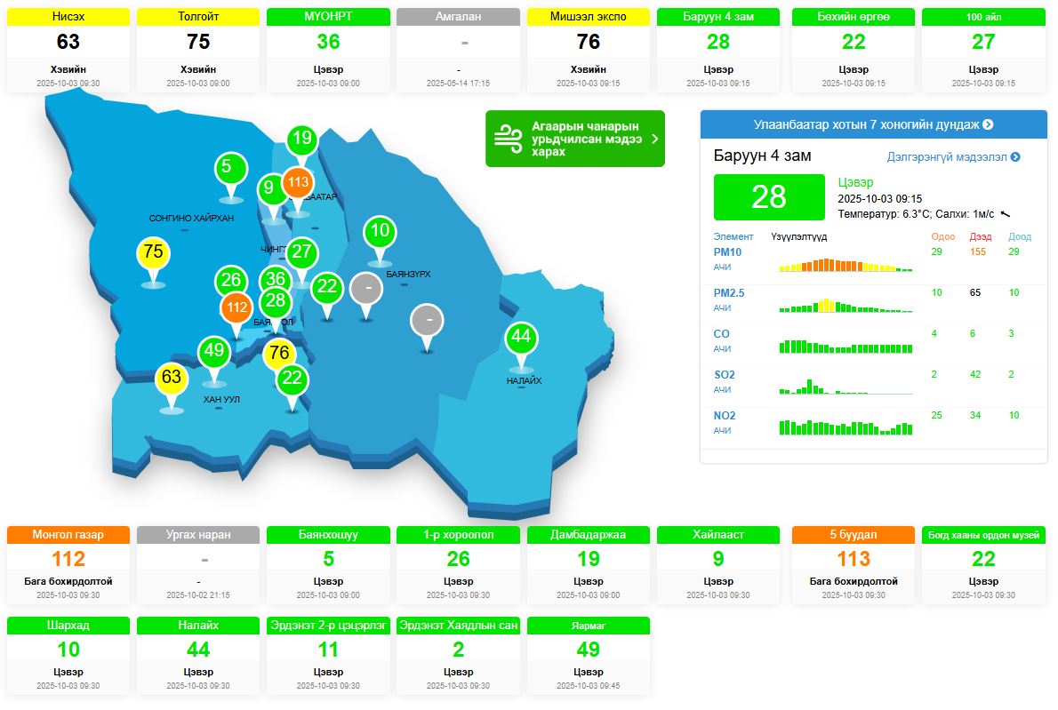 Агаарын чанарын өнөөдрийн /2025.10.03/ мэдээг танилцуулж байна.