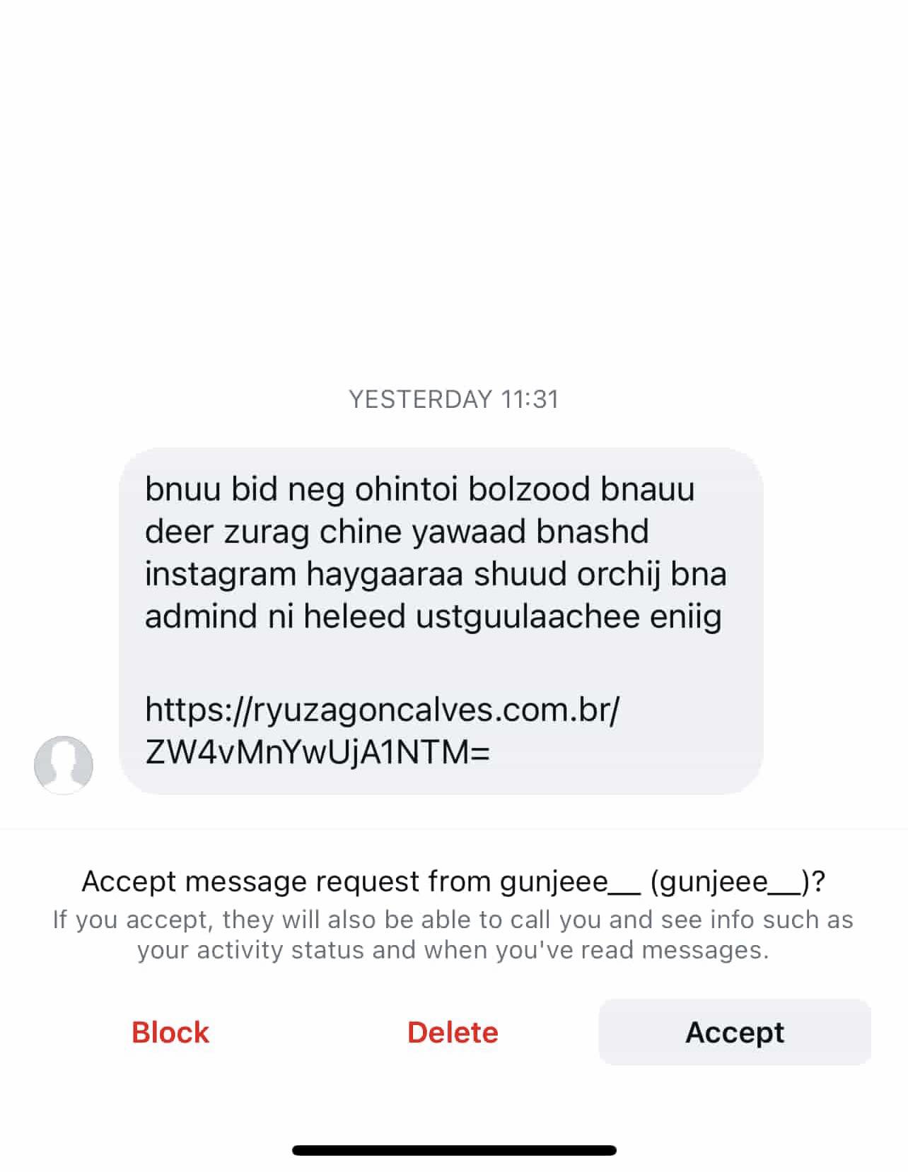 Хэн нэгэн найз, танил, эсхүл үл таних хүний цахим хаягаас ирсэн эргэлзээтэй линк дээр битгий дарж ороорой. Ийм холбоос дарвал таны банкны мэдээлэл, Facebook, Instagram, Telegram зэрэг нийгмийн сүлжээний нууц үг, утсан дээрх хувийн мэдээлэл алдагдах эрсдэлтэй байна.