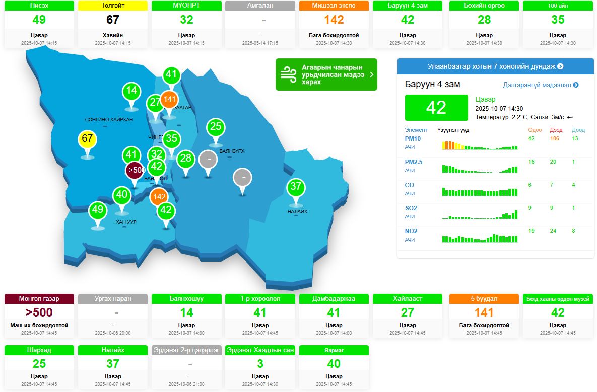 Агаарын чанарын өнөөдрийн /2025.10.07/ мэдээг танилцуулж байна.