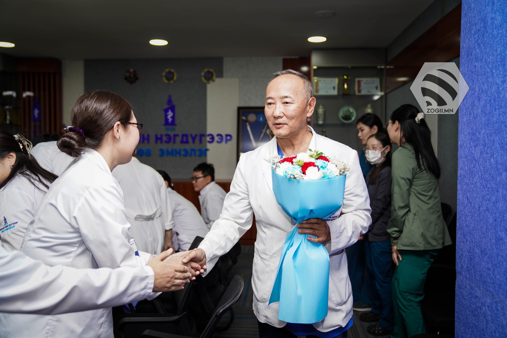 Монгол улсын эрүүл мэндийн салбарт тэр дундаа Улсын нэгдүгээр төв эмнэлэгт амжилт, үр бүтээлтэй ажилласан Эрчимт эмчилгээний тасгийн зөвлөх эмч, Монгол улсын хүний гавьяат эмч Ц.Ганбатад хамт олон нь хүндэтгэл үзүүллээ.