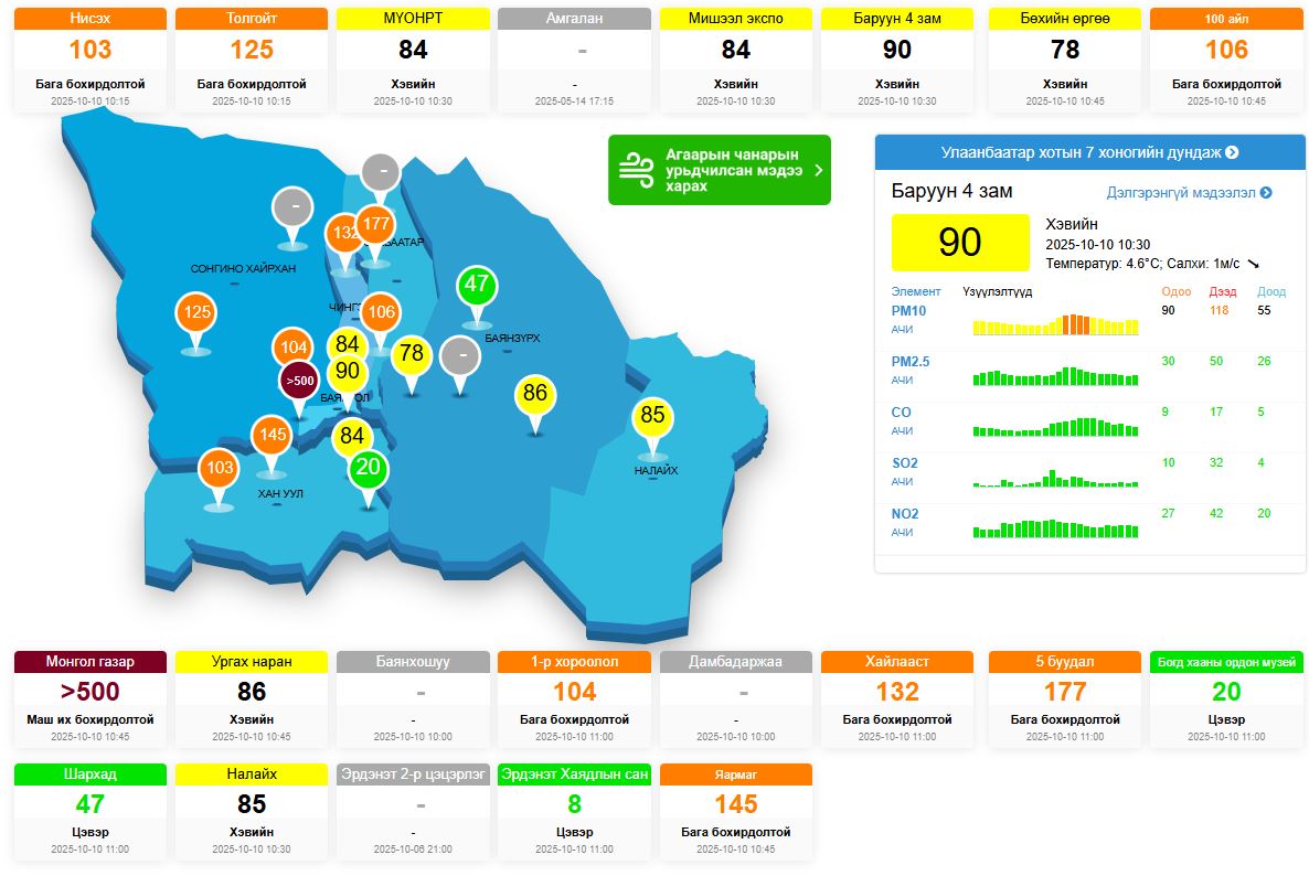 Өнөөдрийн /2025.10.10/ агаарын чанарын мэдээг танилцуулж байна.