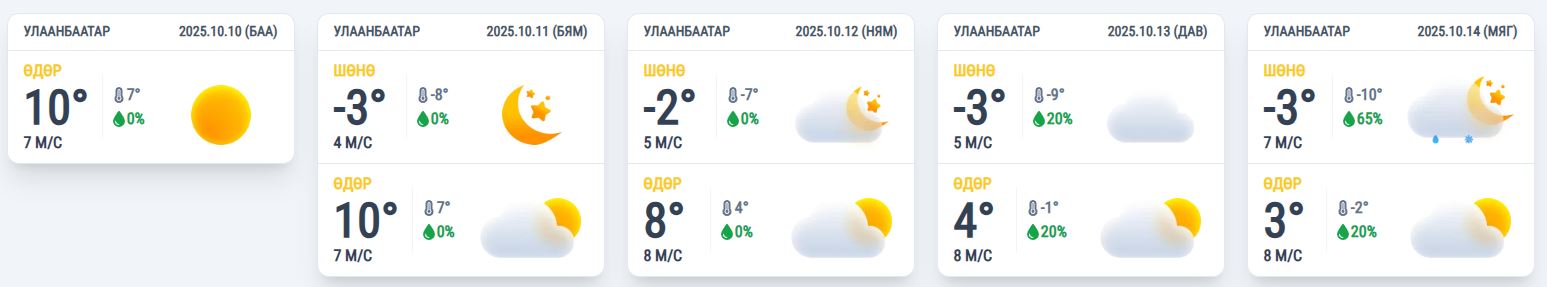 Улаанбаатар хот орчмын 10 хоногийн цаг агаарын урьдчилсан төлөв