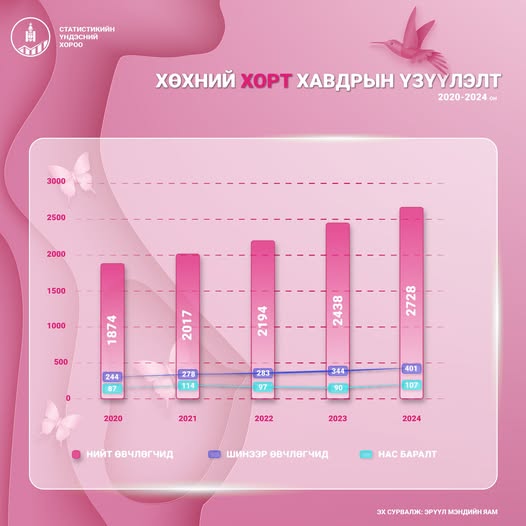 Эрүүл Мэндийн Яамны мэдээлснээр 2024 оны байдлаар улсын хэмжээнд хөхний хорт хавдраар 2728 хүн оношлогдсоноос 401 нь шинээр оношлогджээ. Сүүлийн таван жилд хөхний хорт хавдраар 495 хүн нас барсан байна. Дэлхий нийтээр жил бүрийн аравдугаар сарыг хөхний хорт хавдрын эсрэг дуу хоолойгоо нэгтгэх, хөхний хавдрын талаар мэдлэг ойлголтыг нэмэгдүүлэх, эрт илрүүлгийн ач холбогдлыг таниулах мөн хөхний хорт хавдрын эсрэг тэмцэж буй даван туулагчдын итгэл найдвар, хүч чадлыг онцлон тэмдэглэх онцгой сар болгон тэмдэглэдэг уламжлалтай билээ.