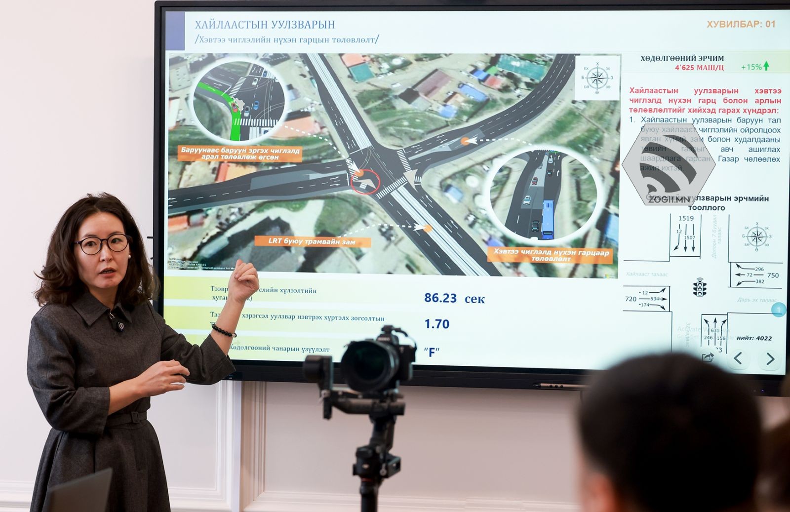 Түүнчлэн Нийслэлийн Замын хөгжлийн газрын Бодлого төлөвлөлтийн хэлтсийн даргын албан үүргийг түр орлон гүйцэтгэгч М.Ичинхорлоо Улаанбаатар хотын авто зам, уулзваруудын ослын шалтгааныг тодорхойлж, тэмдэг тэмдэглэгээ болон хөдөлгөөний зохион байгуулалтын инженерийн шийдэл боловсруулах зөвлөх үйлчилгээний мэдээлэл танилцууллаа. Энэ хүрээнд түгжрэлийг бууруулах ажлыг хэсгийн хуралдааны гишүүд санал солилцож, осол хамгийн ихээр гарч байгаа цэгүүдийн уулзварын зохион байгуулалт, эргэлтийн радиусыг тооцоолж үзэх нь зөв гэдэгт санал нэгдлээ.Ажлын хэсгийн гишүүдийн саналын дагуу НИТХ-ын дарга А.Баяр ирэх жилүүдэд нийслэл хотын тэмдэг тэмдэглэгээг бүрэн шинэчлэхэд шаардлагатай төсвийн тооцоолол хийхийг Нийслэлийн замын хөгжлийн газарт үүрэг болголоо.