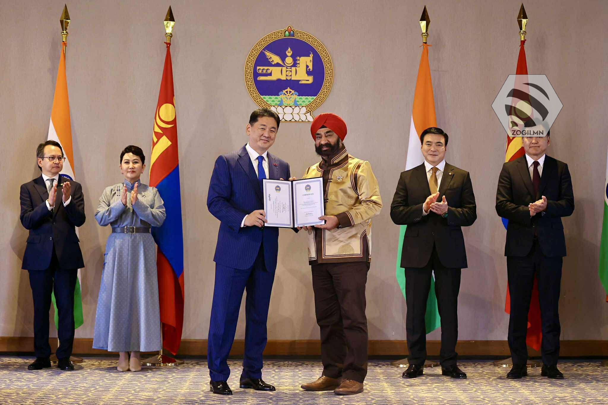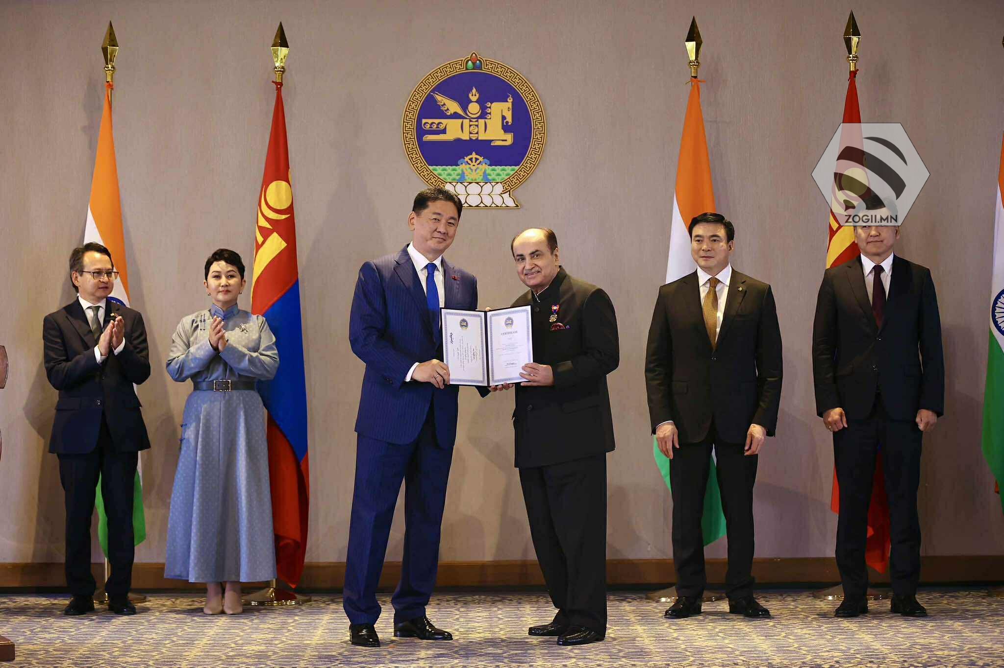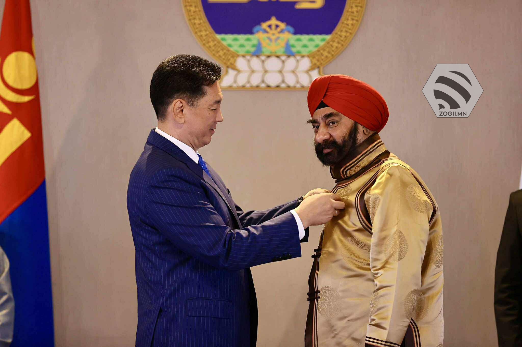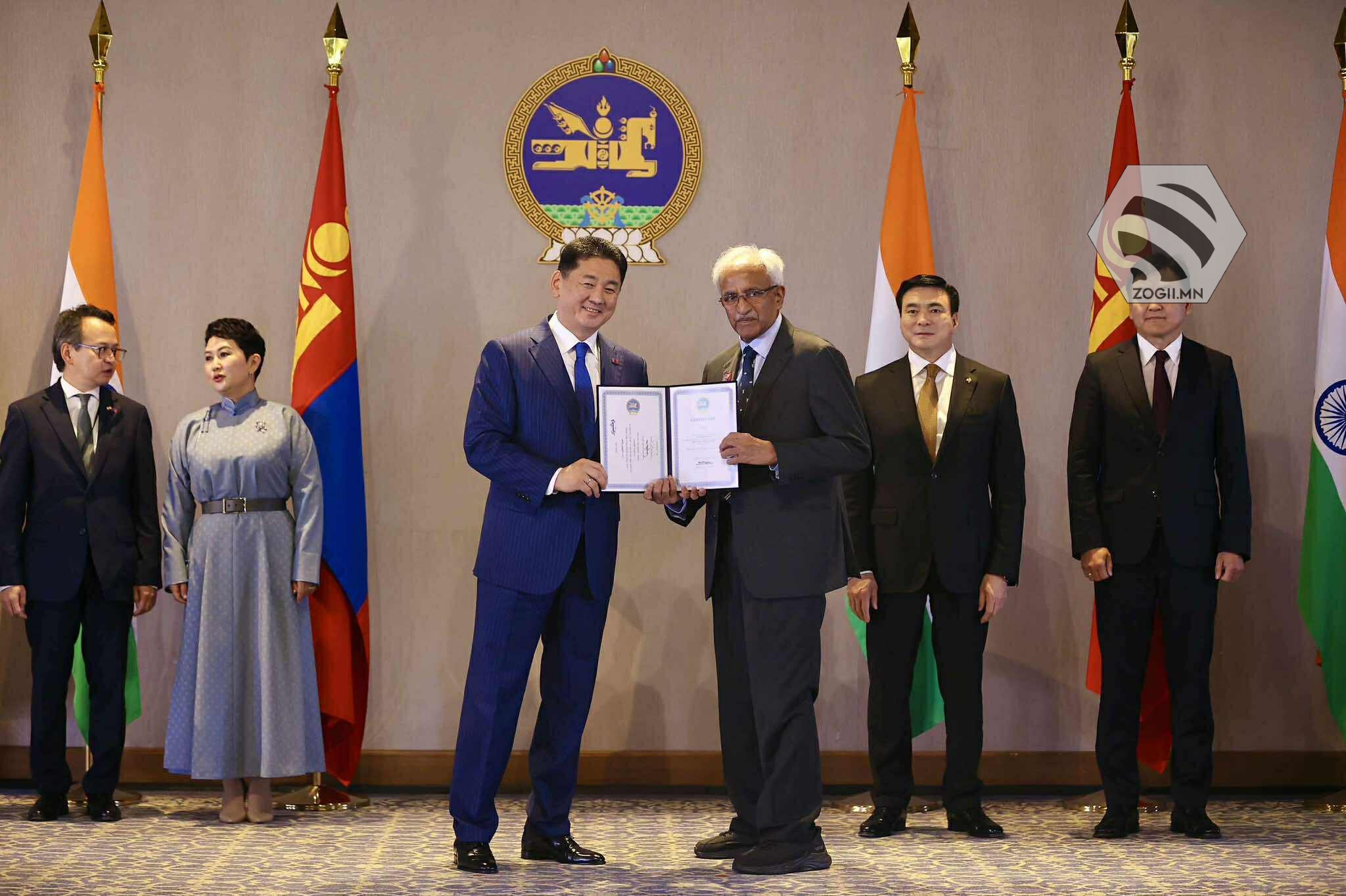Хоёр орны хооронд дипломат харилцаа тогтоосны 70 жилийн ойг тохиолдуулан харилцаа, хамтын ажиллагааг өргөжүүлэн хөгжүүлэхэд үнэтэй хувь нэмэр оруулсан энэтхэг иргэдийг төрийн одон, медалиар шагналаа.