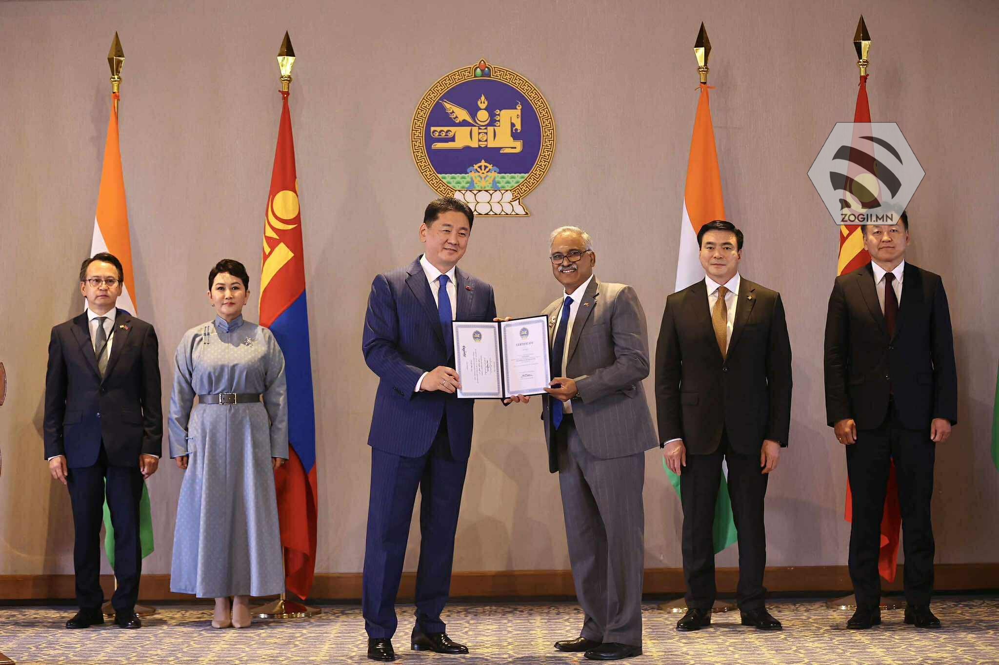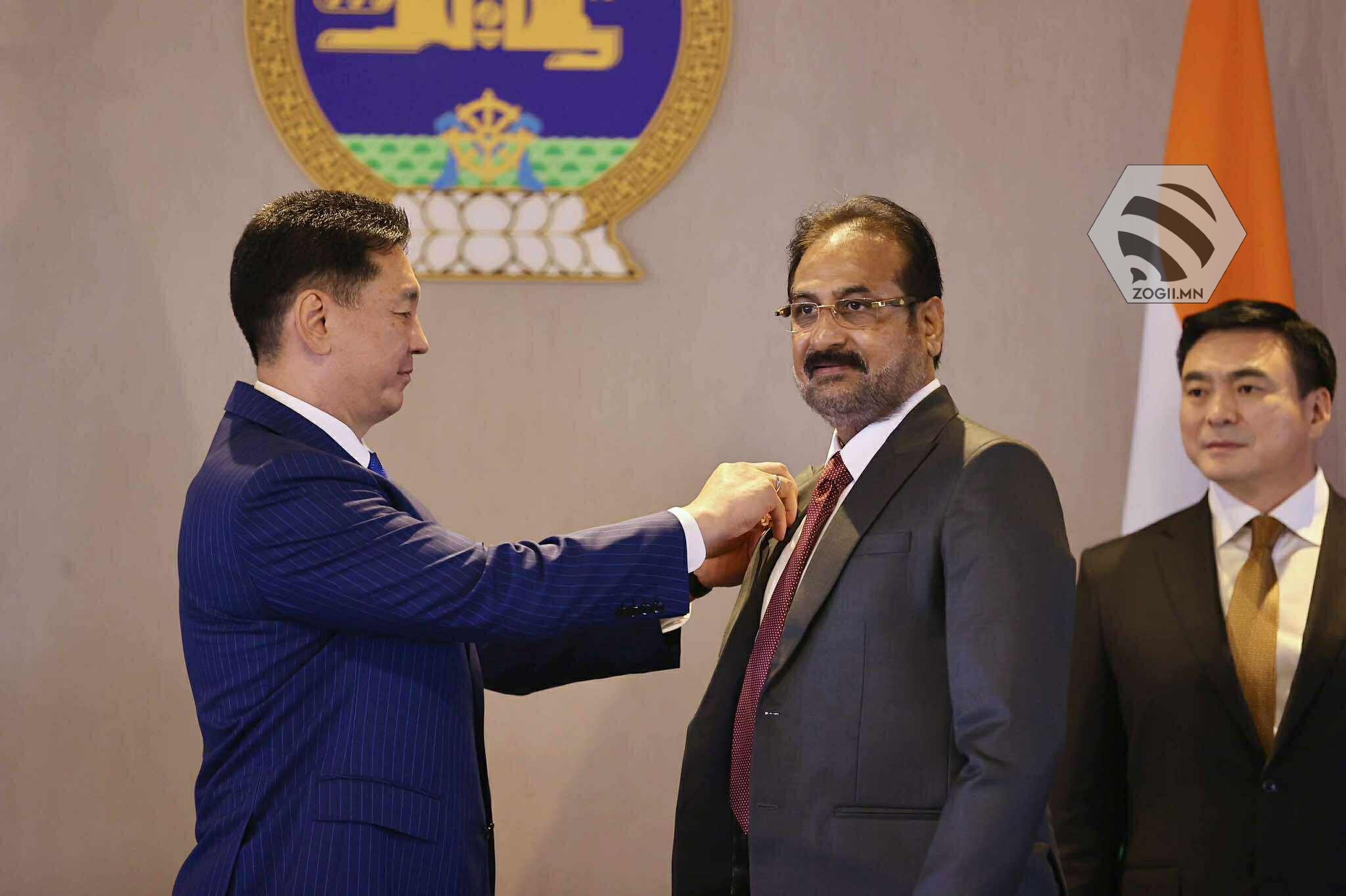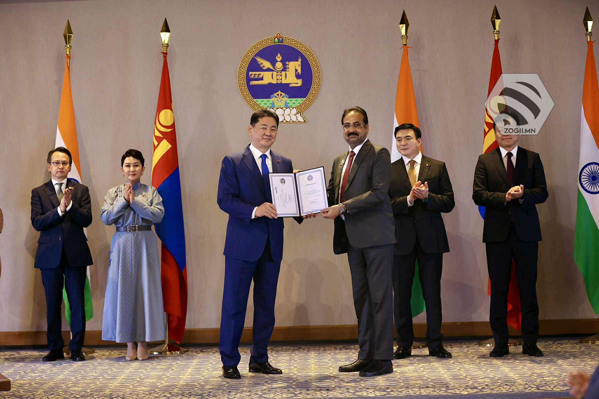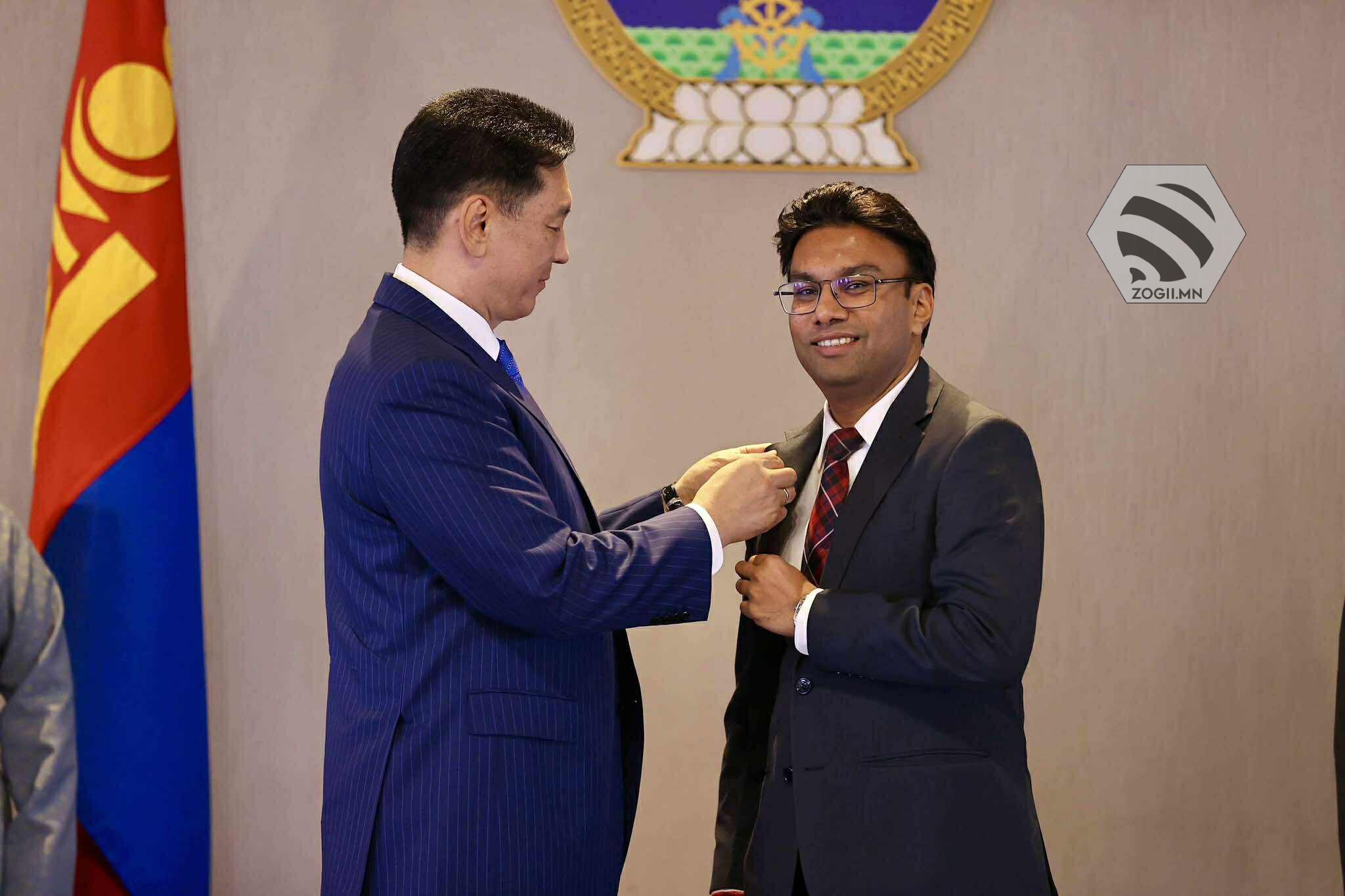 Хоёр орны хооронд дипломат харилцаа тогтоосны 70 жилийн ойг тохиолдуулан харилцаа, хамтын ажиллагааг өргөжүүлэн хөгжүүлэхэд үнэтэй хувь нэмэр оруулсан энэтхэг иргэдийг төрийн одон, медалиар шагналаа.