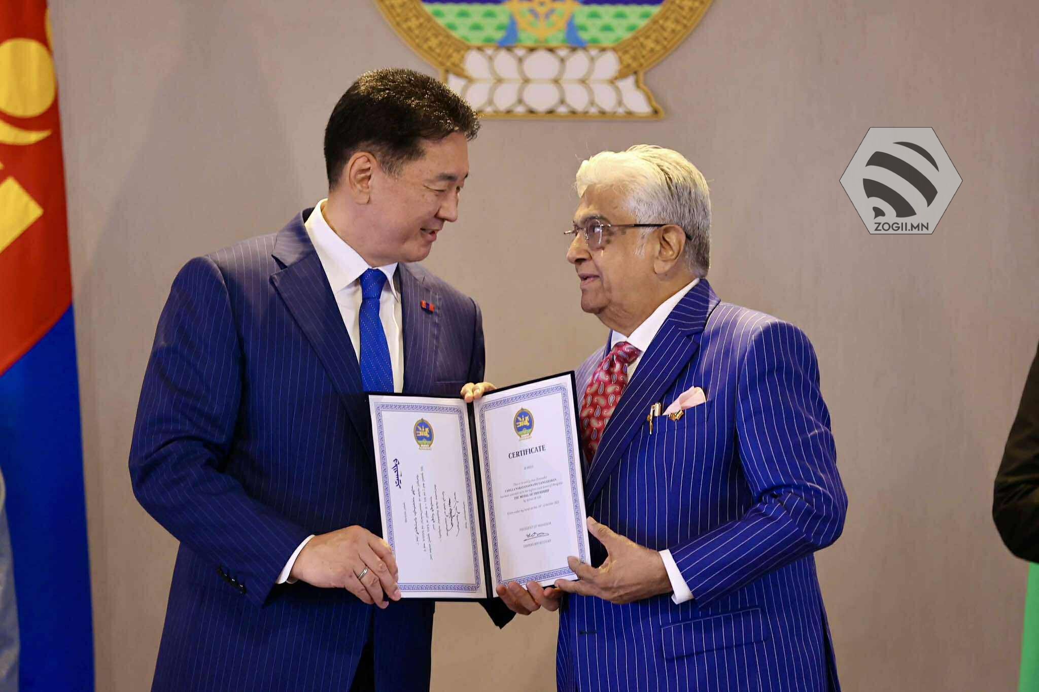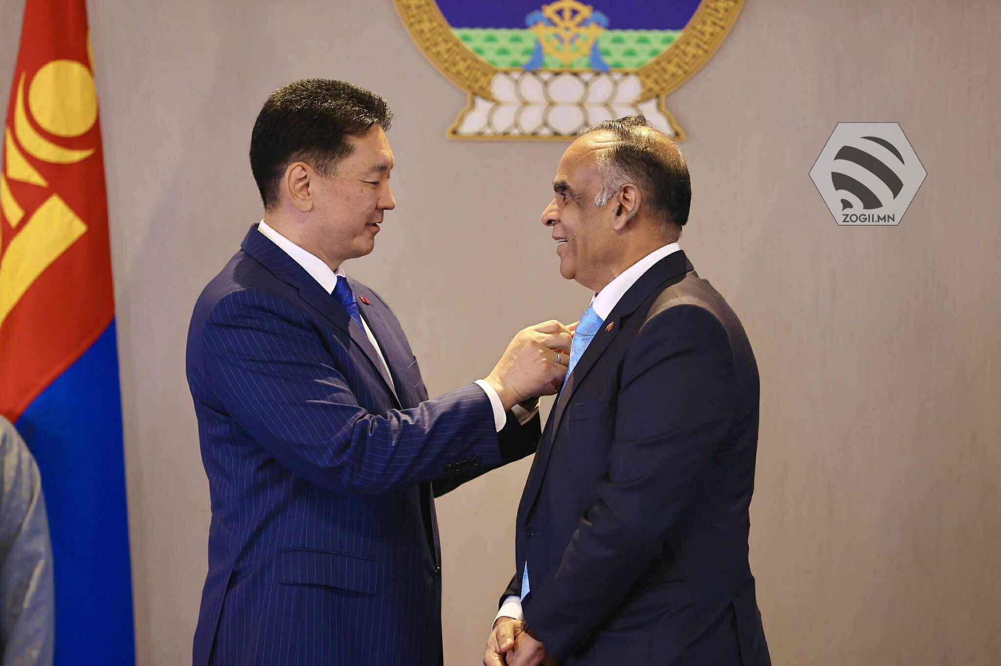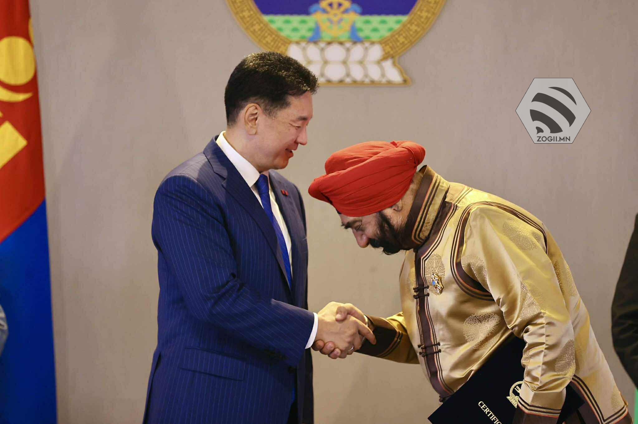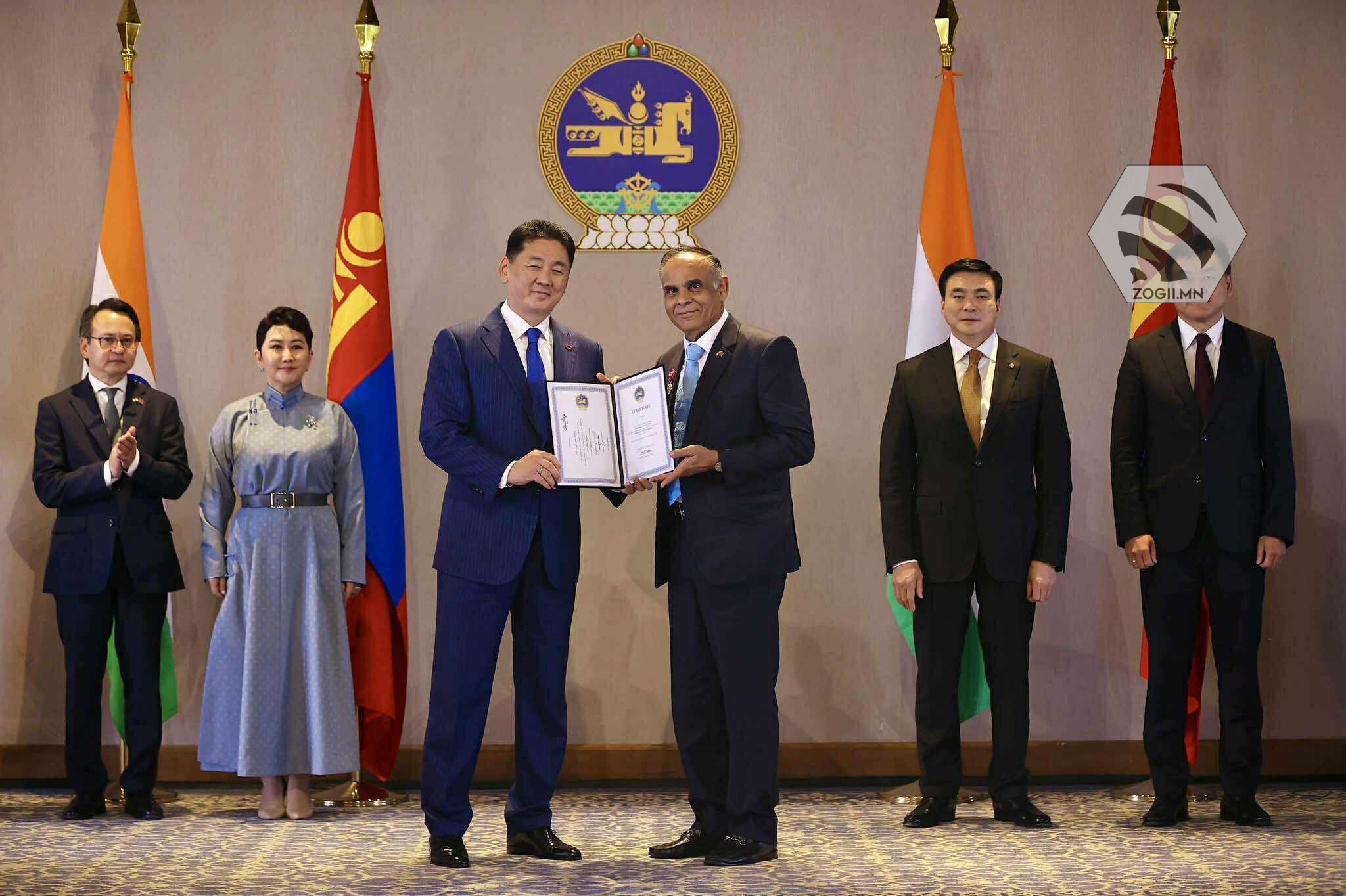 Хоёр орны хооронд дипломат харилцаа тогтоосны 70 жилийн ойг тохиолдуулан харилцаа, хамтын ажиллагааг өргөжүүлэн хөгжүүлэхэд үнэтэй хувь нэмэр оруулсан энэтхэг иргэдийг төрийн одон, медалиар шагналаа.