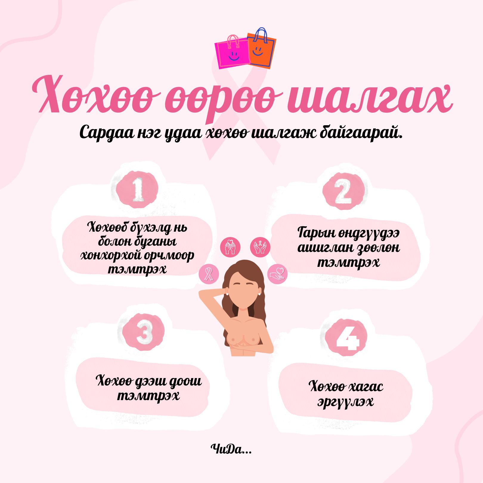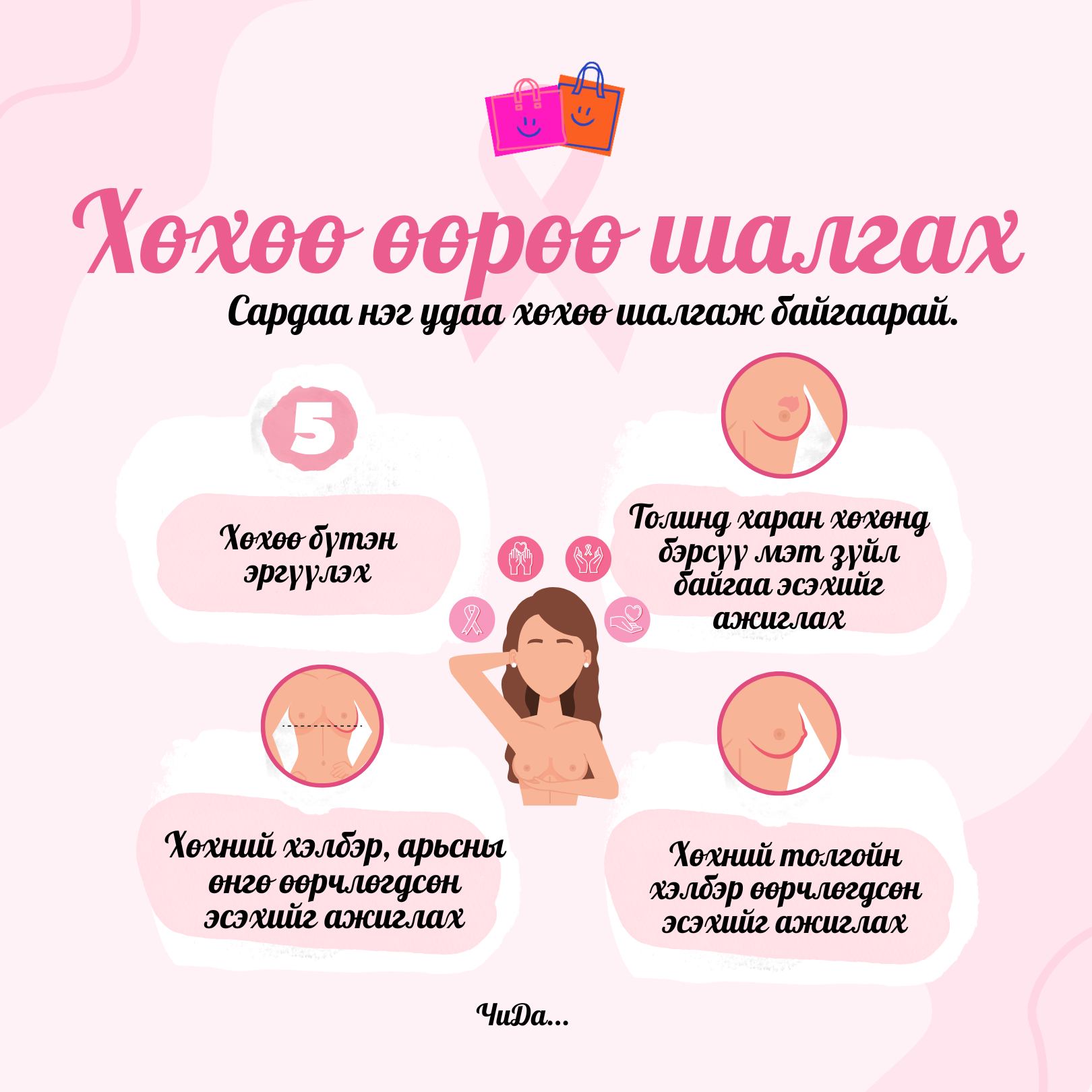 Хөхөө өөрөө шалгах аргыг мэргэжлийн эмч нар зөвлөж байна.