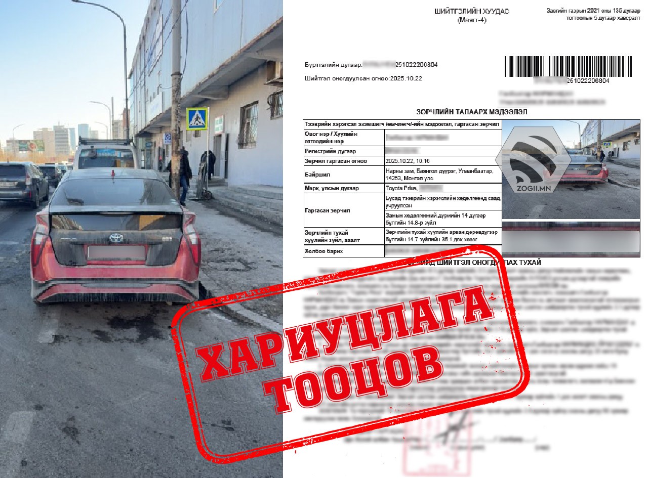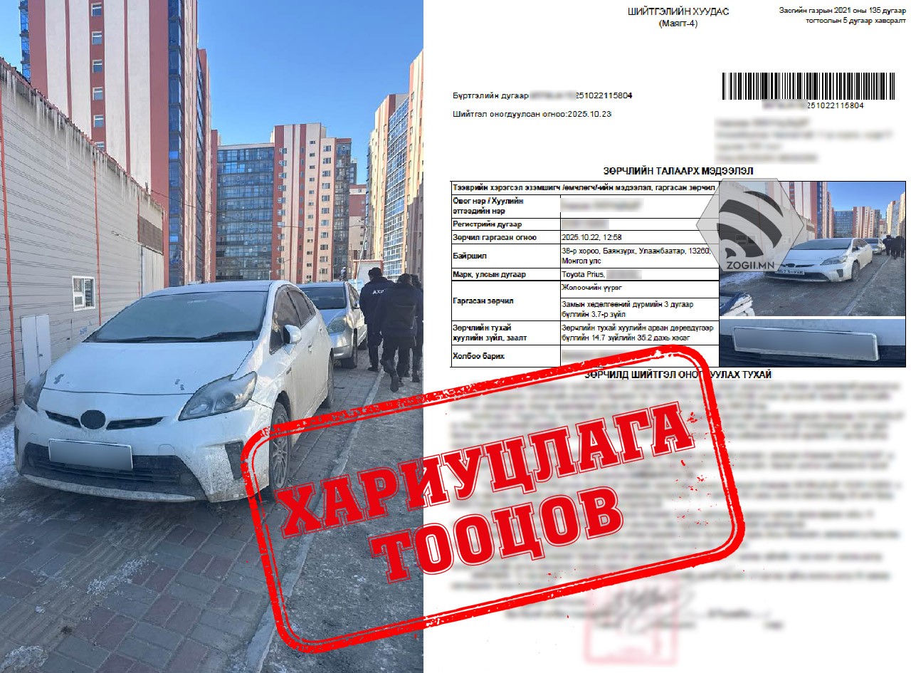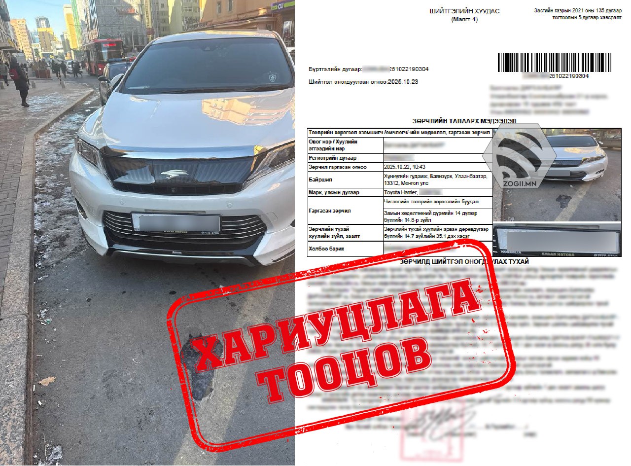 2025 оны 10 дугаар сарын 20-ны өдрөөс 23-ны өдрийн хооронд 102 аппликейшн ашиглан иргэдээс ирүүлсэн 2862 зөрчилд хариуцлага тооцов.